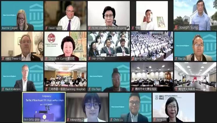 中大新聞網廣州6月20日電(通訊員彭福祥、梁嘉韻)6月17日至19日,中山大學附屬第一醫院攜手美國哈佛醫學院教學醫院Brigham and Women’s Hospital(BWH)聯合舉辦醫院高質量發展論壇。大會聚焦全球醫院高質量發展熱點難點,涵蓋醫院戰略發展、學科建設、醫學教育創新、人才培養、轉化醫學、精準醫學等內容。美國哈佛醫學院、BWH,英國伯明翰大學、曼徹斯特大學,德國慕尼黑大學,歐洲醫學教育聯盟,新加坡南洋理工大學等10家世界知名院校和國內14家公立醫院高質量發展試點醫院的負責人與知名專家齊聚云端,共話醫院戰略發展。