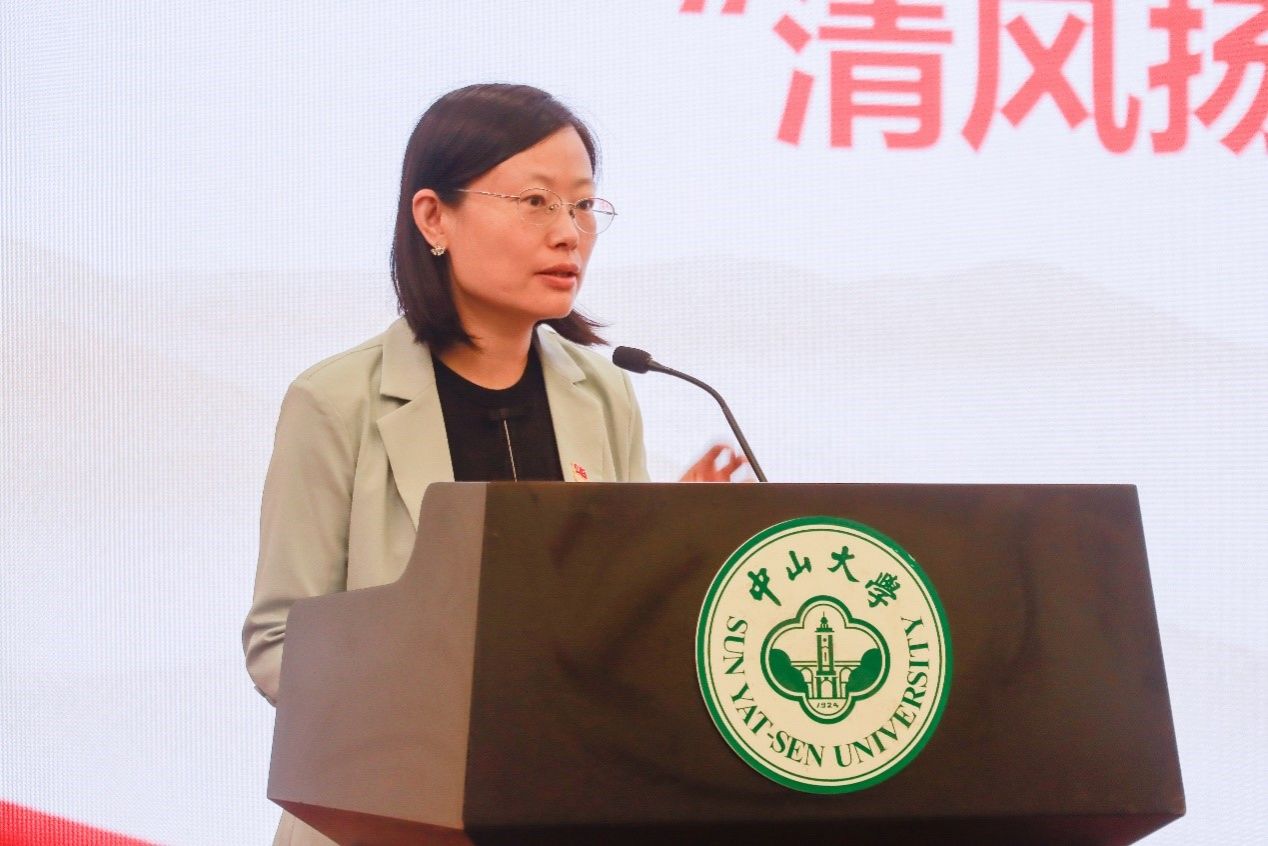 余敏斌副書記講話并宣讀《致中山大學2022屆畢業生廉潔倡議書》(來源:黨委宣傳部 肖遙攝)