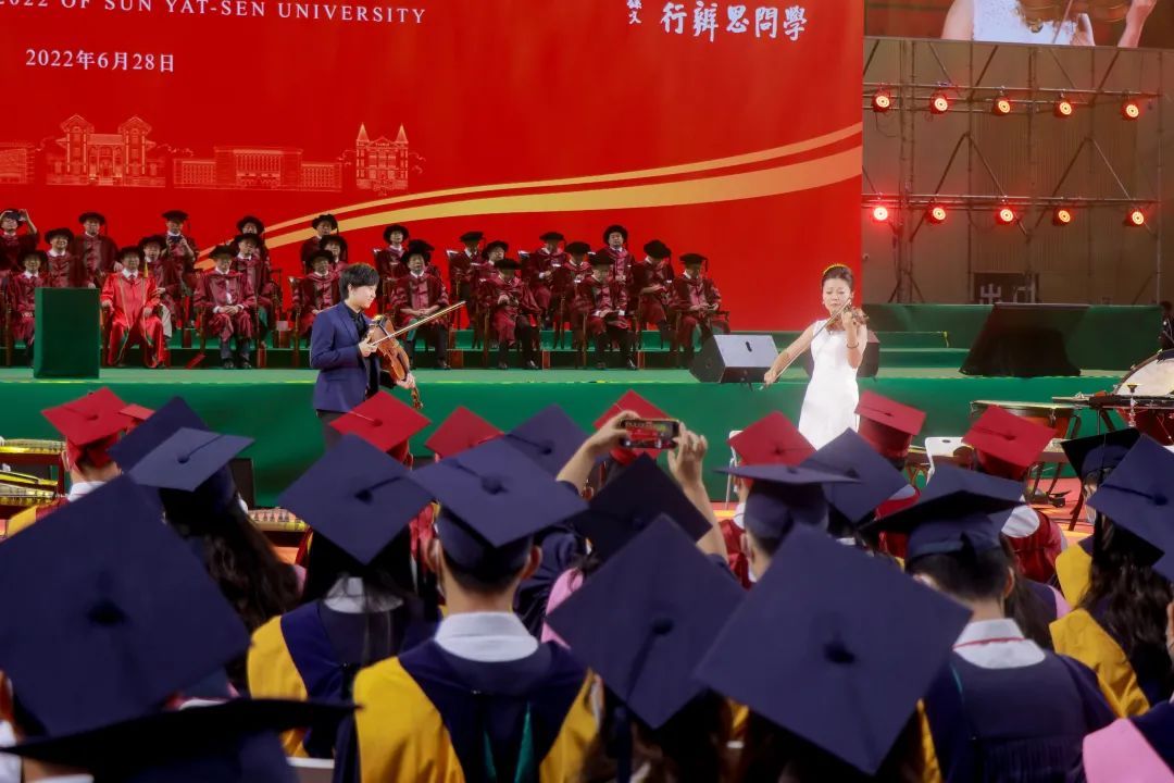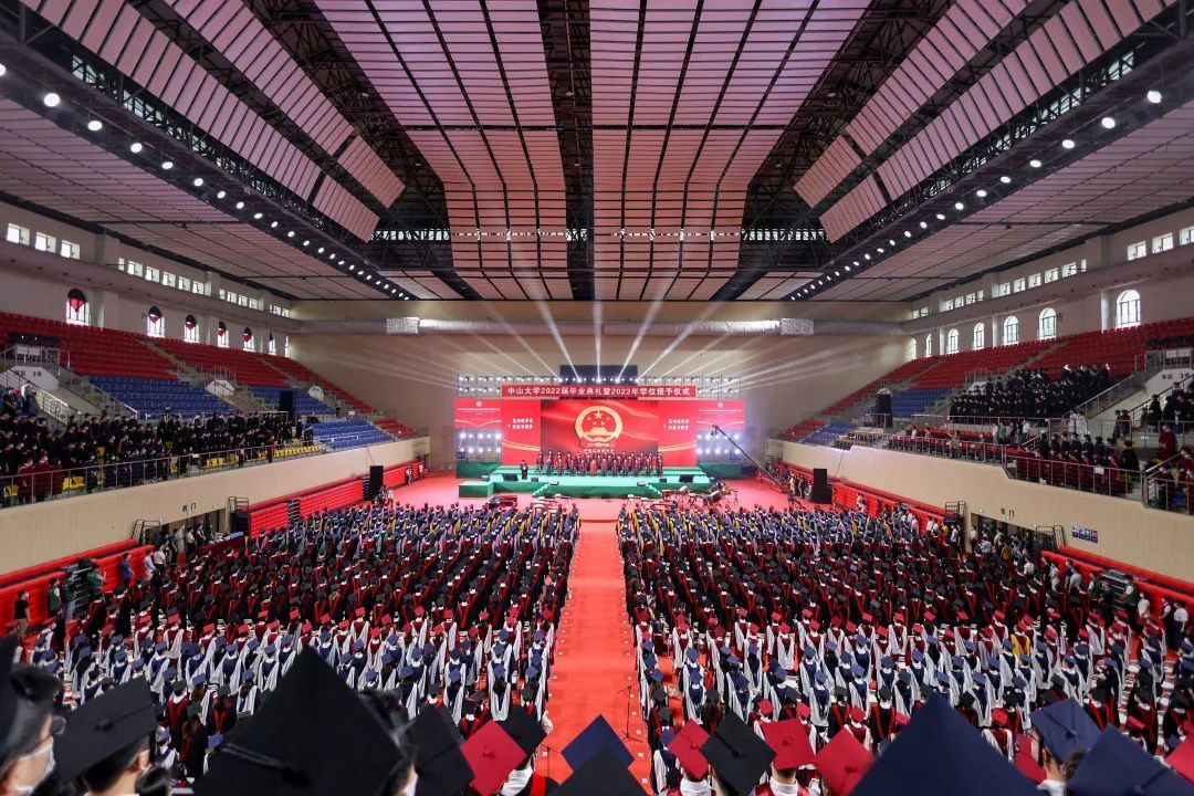 隨著校歌悠揚旋律的響起,全體師生動情哼唱。畢業的不舍、欣喜,對未來的堅定、向往都融在歌聲里。伴隨一聲洪亮的“禮成”,中山大學2022屆畢業典禮暨2022年學位授予儀式圓滿完成。