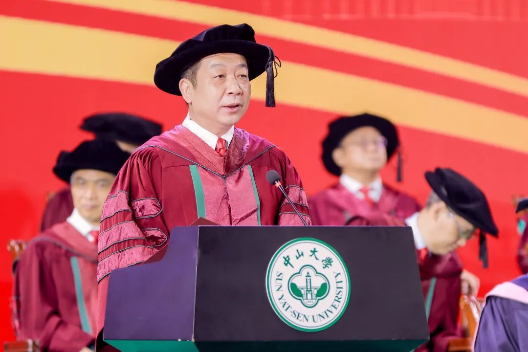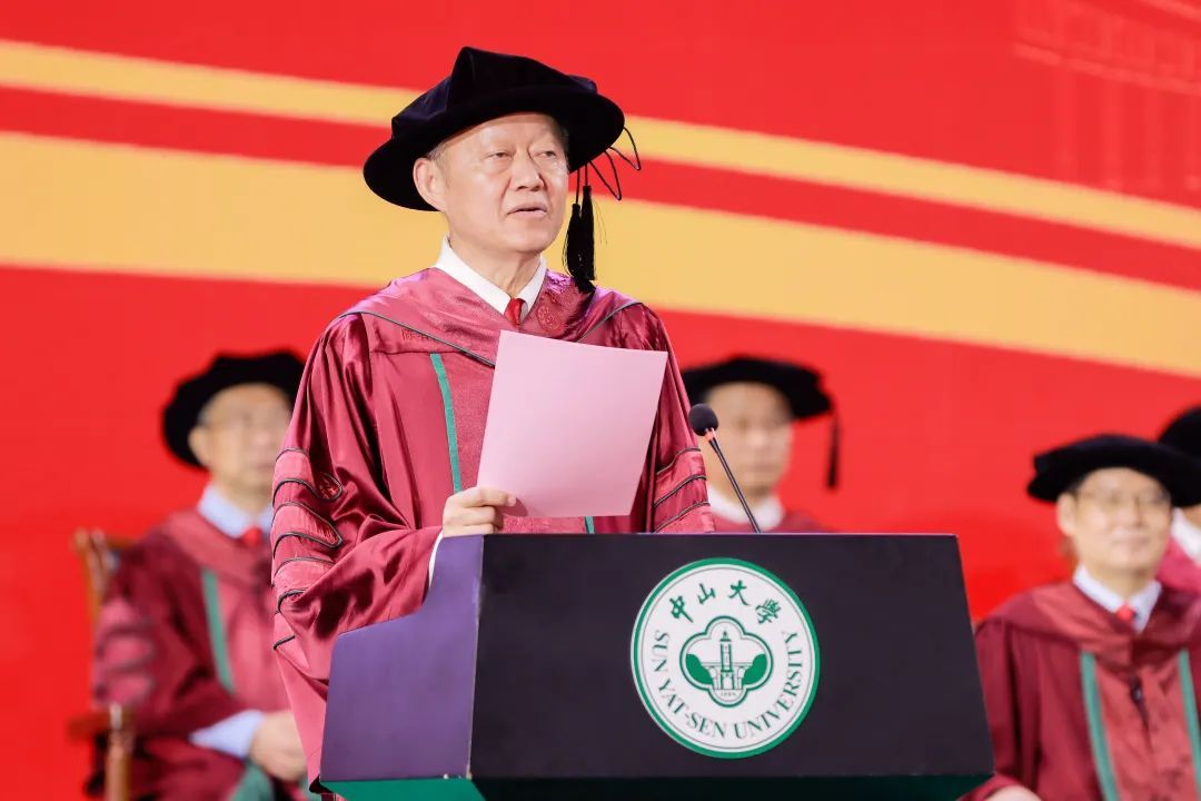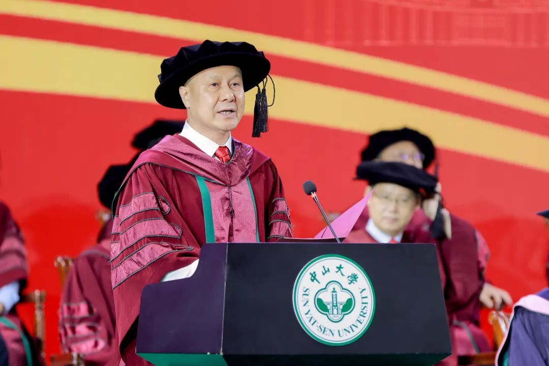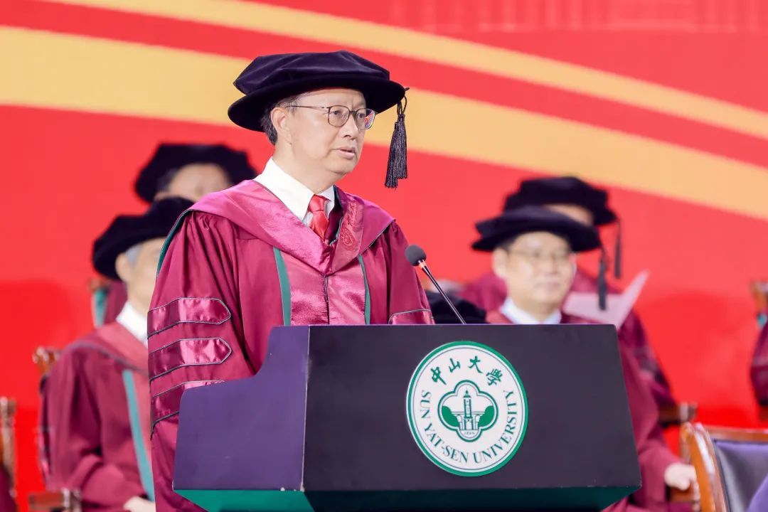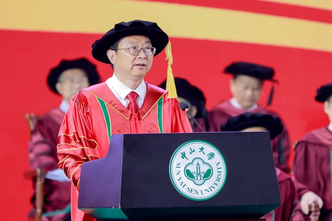 “今天,對于每位畢業的同學而言,都是值得永遠紀念的日子。你們是我擔任中山大學校長以來,即將送走的第一批畢業生,你們的校齡比我的長。我和老師們為你們學成畢業感到欣喜,也為你們即將離別依依不舍。”