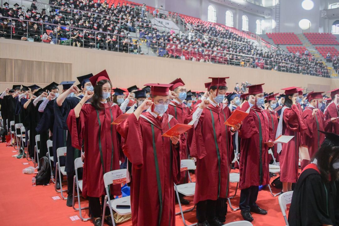 每一位中大醫學生入校時都要宣誓醫學生誓詞。在即將離開母校的時刻,全體醫學生代表在蘭平副校長帶領下重溫誓詞,帶著母校的叮嚀與期待,服務人民生命健康。“健康所系,性命相托。當我步入神圣醫學學府的時刻,謹莊嚴宣誓:我志愿獻身醫學,熱愛祖國,忠于人民,恪守醫德,尊師守紀,刻苦鉆研,孜孜不倦,精益求精,全面發展。我決心竭盡全力除人類之病痛,助健康之完美,維護醫術的圣潔和榮譽。救死扶傷,不辭艱辛,執著追求,為祖國醫藥衛生事業的發展和人類身心健康奮斗終生!”