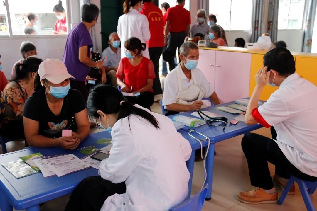 中山眼科中心的師生們?yōu)榍皝砭驮\的中老年群眾進(jìn)行眼科疾病專項(xiàng)檢查,對(duì)兒童的近視、斜視等進(jìn)行診斷治療,并深入講解常見的眼病,派發(fā)宣傳手冊(cè),提醒群眾預(yù)防眼科疾病。