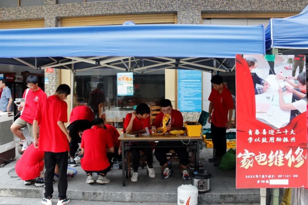 7月9日,在鎮(zhèn)中心街道,科技服務(wù)隊(duì)免費(fèi)為村民維修家電。隊(duì)員們運(yùn)用平時(shí)學(xué)習(xí)到的電路知識(shí)與操作技巧拆卸、修理電路,并為村民們答疑解惑。