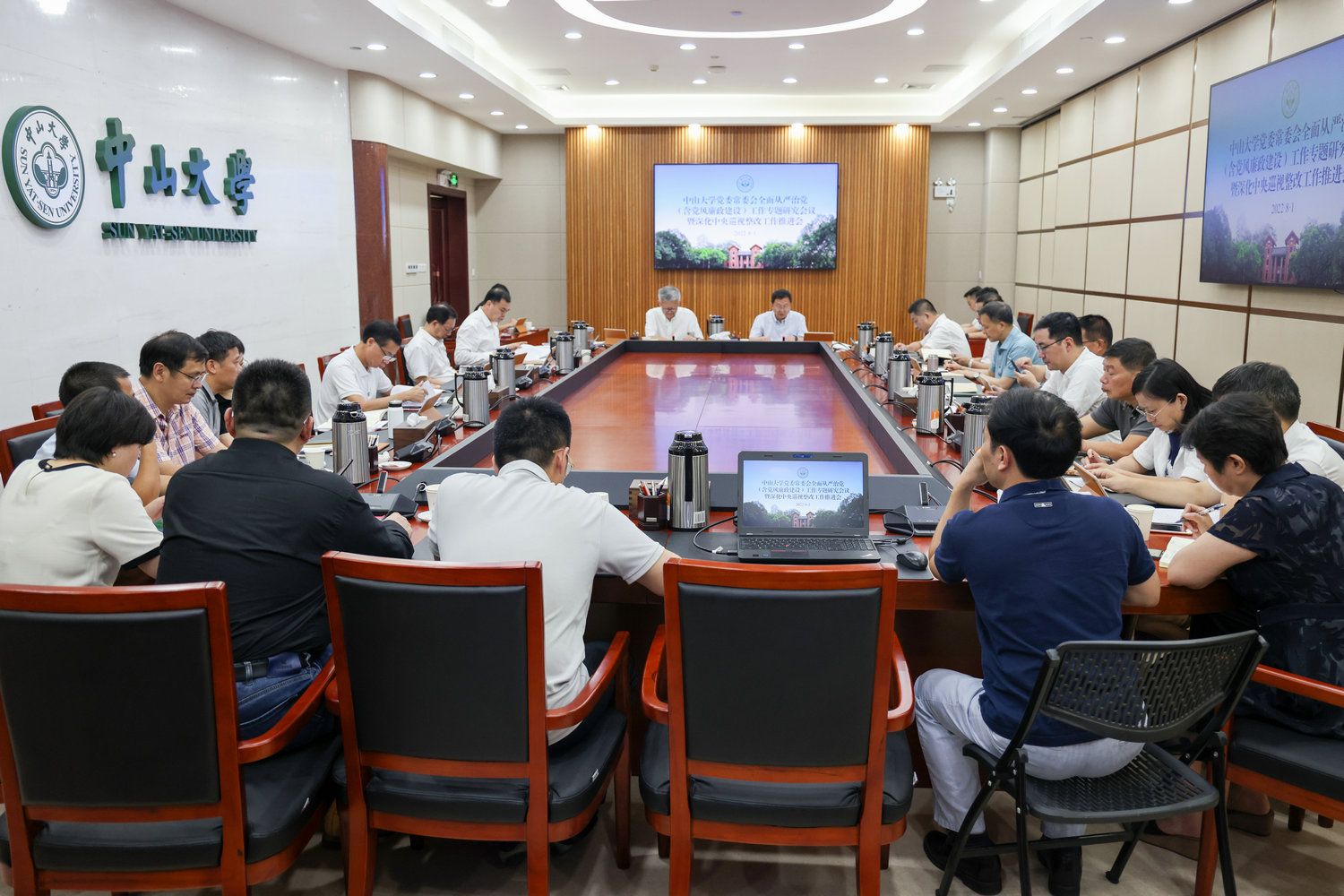 中大新聞網(wǎng)廣州8月4日電(記者吳立堅)8月1日,我校黨委常委會在廣州校區(qū)南校園召開全面從嚴治黨工作專題研究會議暨深化中央巡視整改工作推進會。會議由校黨委書記陳春聲主持。校黨委副書記、校長高松,黨委常委及其他校領(lǐng)導(dǎo)參加會議。相關(guān)職能部門和院系負責人列席會議。