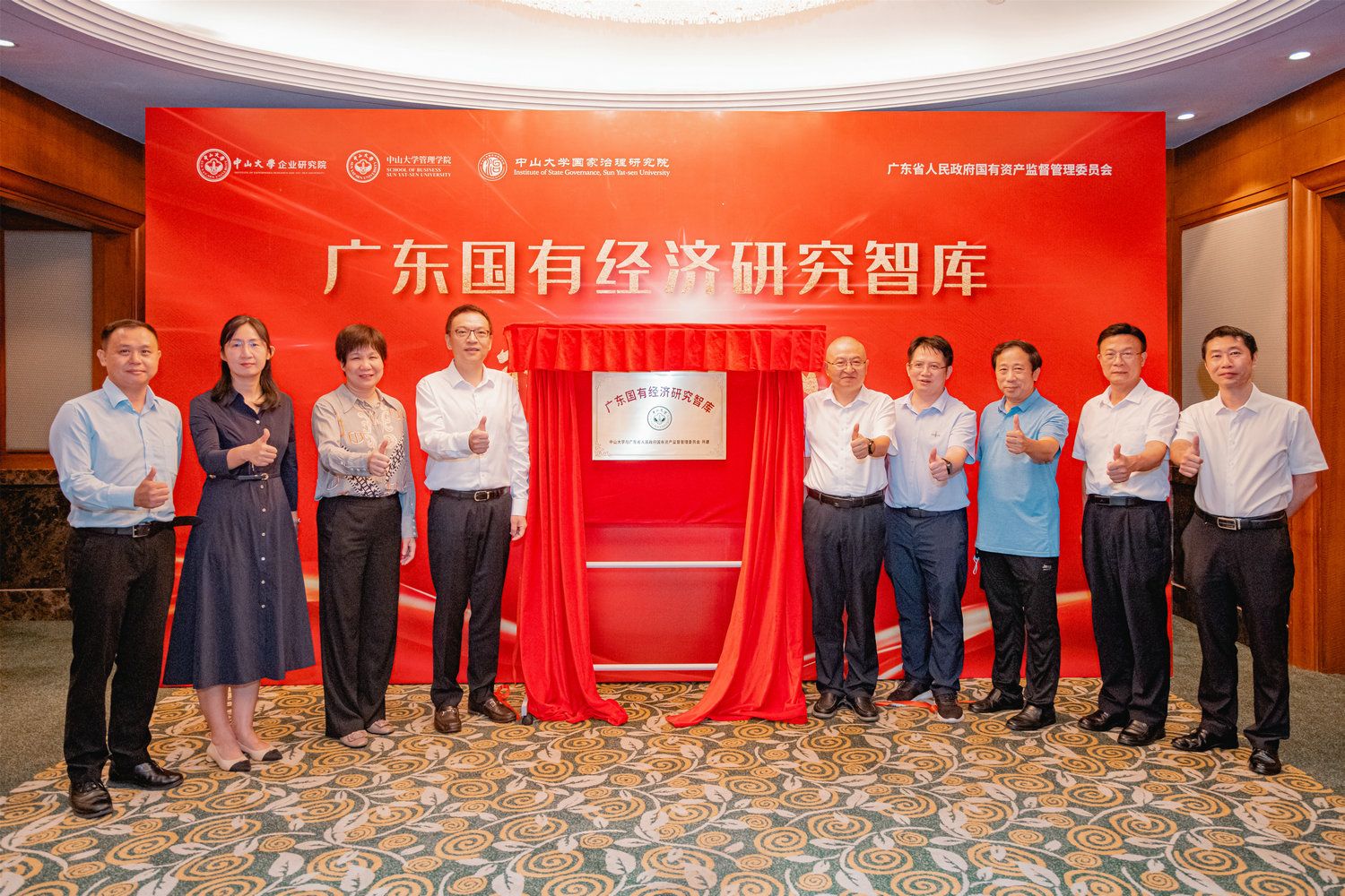 中大新聞網廣州8月18日電(通訊員王姿迪、柯建杰)8月15日,中山大學與廣東省人民政府國有資產監督管理委員會(以下簡稱廣東省國資委)聯合共建的“廣東國有經濟研究智庫”揭牌成立。廣東省副省長陳良賢,國務院國資委黨委委員、秘書長彭華崗,廣東省人民政府副秘書長任小鐵,廣東省國資委黨委書記、主任劉勝,中山大學副校長李善民,中山大學校長助理、管理學院院長王帆等出席了揭牌儀式。