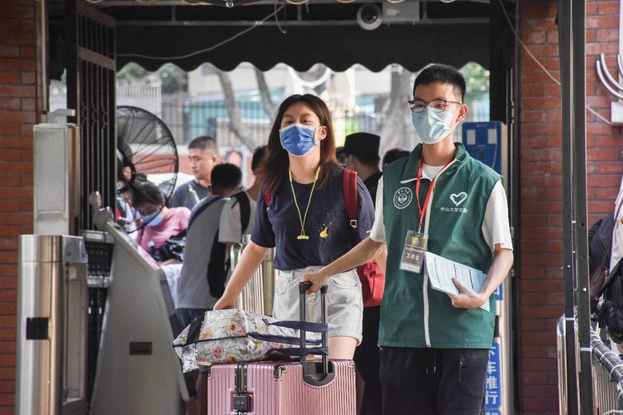 中大新聞網廣州9月1日電(記者吳立堅、周沫、涂文熙)8月31日至9月1日,有著百年歷史的中山大學廣州校區南校園“康樂園”迎來2022級本科新生,超過8000名本科新生將在這里開啟新的追夢之旅。這也是中大20余年來首次在廣州校區南校園統一迎接所有大一新生,并開展軍訓。中山大學黨委書記陳春聲教授、校長高松院士一早便在校園各迎新點和服務站點了解迎新情況,看望和慰問工作人員,并到學生宿舍走訪看望部分新生代表。