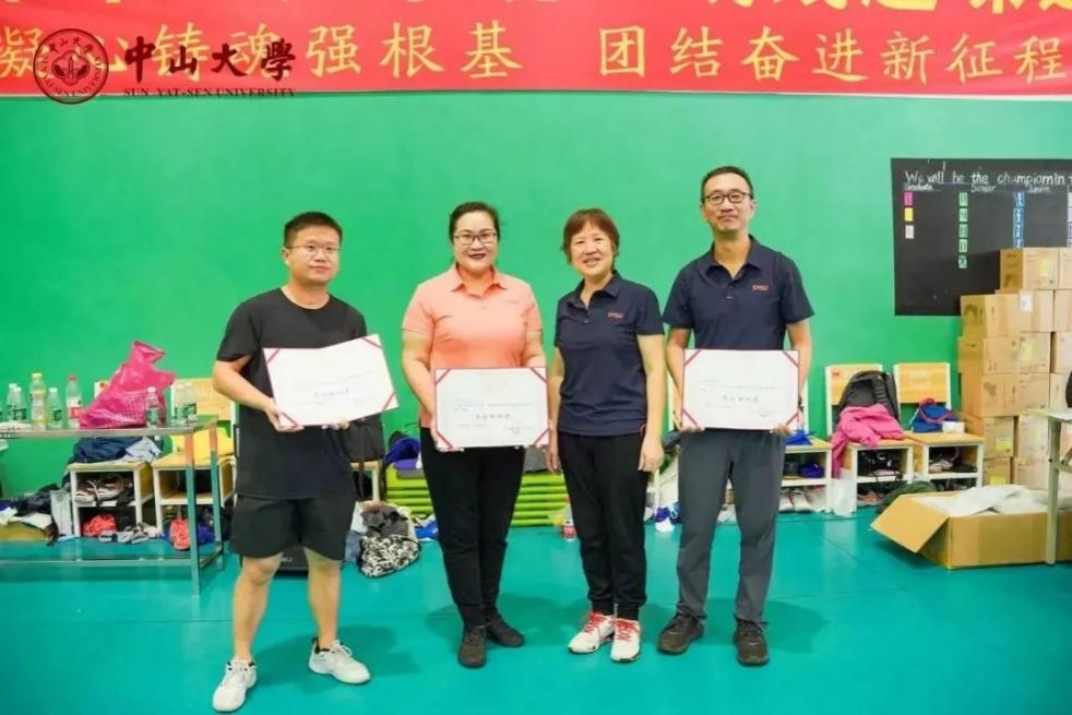 本次趣味運動會由民盟中山大學南校區總支承辦。活動設置了一系列富有創意、寓意深刻的“同心系列”運動項目,既有同舟共濟(五人六足跑)、同向同行(腿手夾抱球接力)、同心同向(投壺)等,也有一起跳繩、隔網踢毽子等。這些項目強調隊員之間的團結合作、積極配合,大家在比賽過程中盡情揮灑汗水,你追我趕,精彩紛呈。經過激烈的角逐,最終九三學社中山大學第一基層委、致公黨中山大學基層委、農工黨中山大學基層委等斬獲“團體一等獎”;中山大學黨委統戰部、中山大學歸國華僑聯合會、民建中山大學基層委榮獲“團體二等獎”;民革中山大學基層委、九三學社中山大學第二基層委、民盟中山大學南校區總支、民進中山大學總支、中山大學黨外知識分子聯誼會獲得“團體三等獎”。此外, 中山大學歸國華僑聯合會、民進中山大學總支、民盟中山大學南總支獲得“最佳組織獎”。