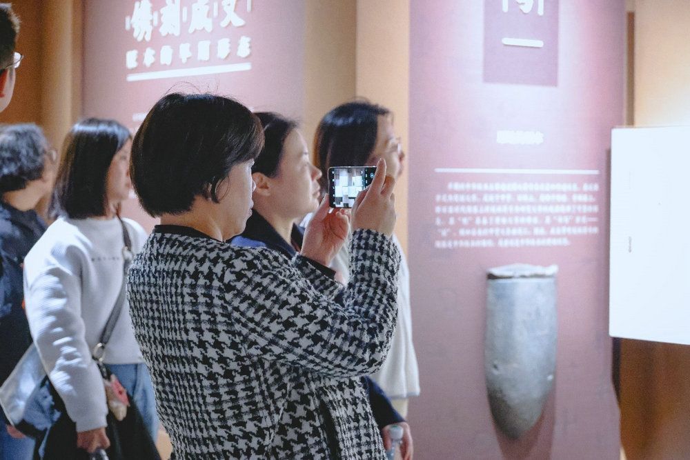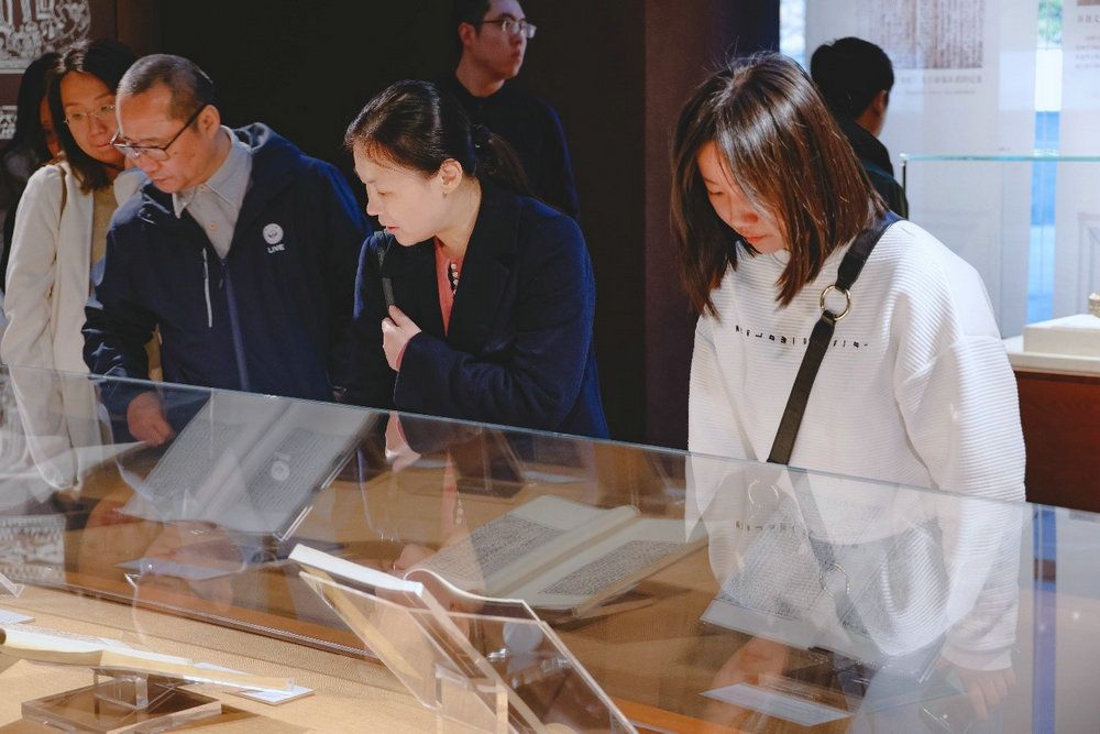 步入大廳,支部的同志們首先觀看了美輪美奐、大氣磅礴的燈光秀展示。隨后,同志們跟隨講解員的腳步,依次參觀了“千秋寫印、華夏有章——中華版本發展概覽”、“紅色印記、映照初心——紅色廣東專題版本展”、“互鑒千年、融通未來——海上絲綢之路專題版本展”等專題展覽。展品和展示項目琳瑯滿目、內涵豐富、互動性強,現場參觀學習讓大家深刻理解了典籍版本所承載的厚重歷史和悠遠文化,深入學習了解了中華版本故事和嶺南奮斗故事,在沉浸式的學習和文化浸潤中,對優秀傳統文化的理解認知和自信底氣油然而生。