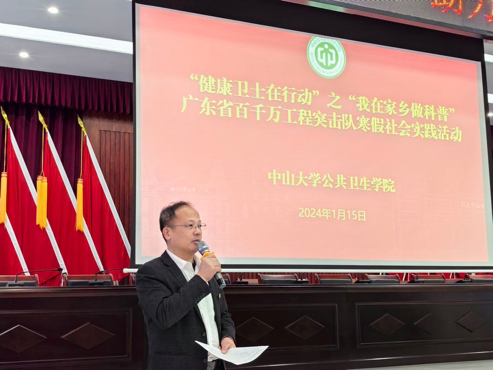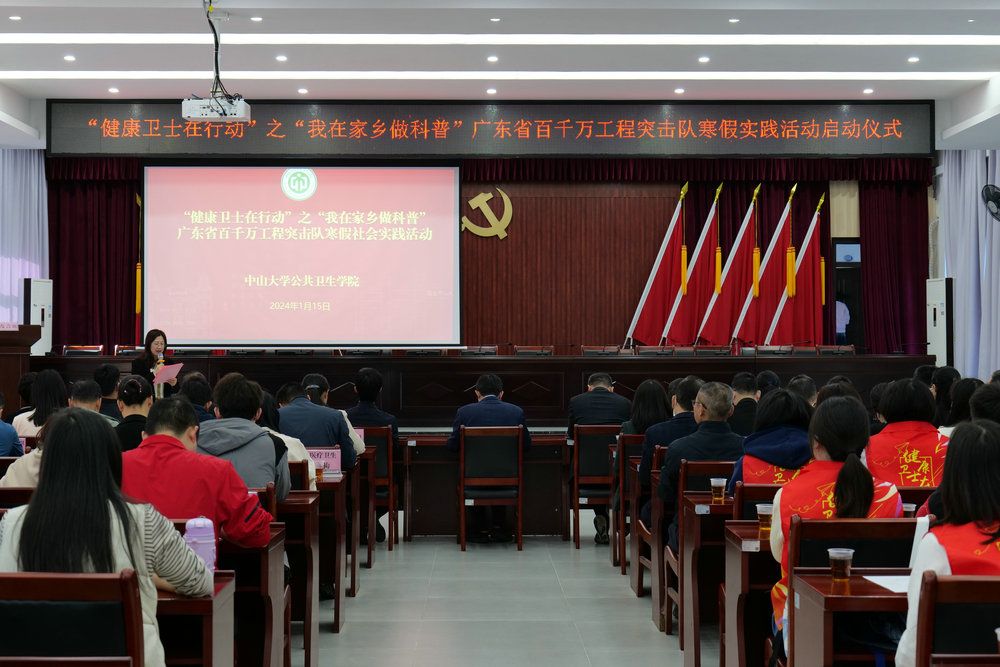 中大新聞網廣州1月16日電(通訊員藍丹紅、楊鎧澤、劉美玲)1月15日上午,中山大學公共衛生學院“健康衛士在行動”之“我在家鄉做科普”廣東省百千萬工程突擊隊寒假社會實踐活動啟動儀式在從化區溫泉鎮人民政府大會議室順利舉行。
