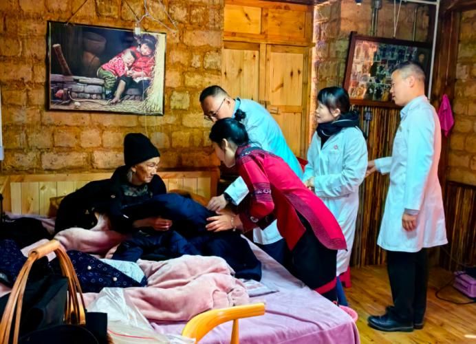 除了坐診、培訓(xùn),專家們還走進(jìn)多戶當(dāng)?shù)卮迕窦抑袉栐\。“這樣疼嗎?”馮霞教授慢慢抬起普婆婆的腿問道。88歲的普婆婆周身疼,不方便走動(dòng),患有骨質(zhì)疏松。中山一院教授們當(dāng)場(chǎng)為普婆婆開藥方,并提醒其用藥注意事項(xiàng)。