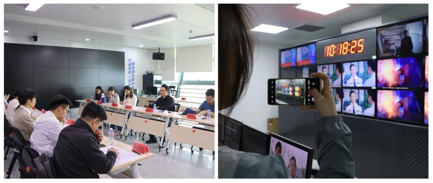 2月23日上午,師生一行到達研學行的第三站——深圳市光明區委宣傳部。在負責人的指引下,師生依次參觀了演播廳、導播室、設備間和配音室等工作空間,了解了融媒體中心的基本工作流程。在隨后的交流環節中,融媒體中心的核心成員為大家解答了有關公眾號推文選題、視頻號創作靈感等問題。