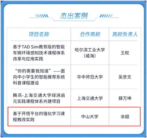 中大新聞網(wǎng)訊(通訊員吳曉鴻)為落實教育部產(chǎn)學(xué)合作協(xié)同育人項目高質(zhì)量發(fā)展的要求,展示項目實施過程中產(chǎn)生的典型做法和案例,促進示范性探索,由教育部產(chǎn)學(xué)協(xié)同育人專家組專家、教育部教學(xué)指導(dǎo)委員會專家以及騰訊公司行業(yè)專家組成的評審專家組開展了2023年度“教育部-騰訊產(chǎn)學(xué)合作協(xié)同育人”優(yōu)秀及杰出案例評選工作,從符合參評要求的項目中評選出4項杰出案例和6項優(yōu)秀案例。計算機學(xué)院余超副教授的《基于開悟平臺的強化學(xué)習(xí)課程教改實踐》項目入選2023年度“教育部-騰訊產(chǎn)學(xué)合作協(xié)同育人”杰出案例。
