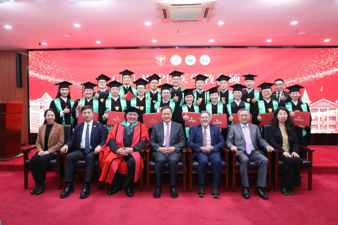 中山大學常務副校長、中山一院院長肖海鵬教授,中山大學校長助理、中山醫(yī)學院院長、中山一院副院長匡銘教授,中山醫(yī)學院黨委書記郝雅娟,中山醫(yī)學院醫(yī)學教育發(fā)展中心主任王庭槐教授,中山醫(yī)學院副院長王淑珍教授,AMEE前主席Trevor Gibbs教授,GMU校長Hossam Hamdy教授(線上)出席學位授予儀式,各臨床教研室代表、一線臨床教師代表、中山醫(yī)學院黨政部門負責人及骨干教師代表、中山一院相關職能部門代表參加典禮。