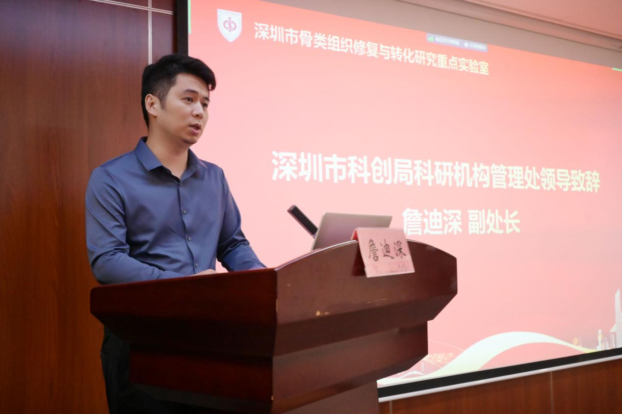深圳市科創局實驗室與科研機構管理處副處長詹迪深向中山七院表達了祝賀。他表示,骨科重點實驗室是深圳市科技創新體系的重要組成部分,期待中山七院能夠充分利用這一新平臺,以提升深圳骨科學術水平和科研能力為主要目標,向廣東省重點實驗室、國家重點實驗室邁進。
