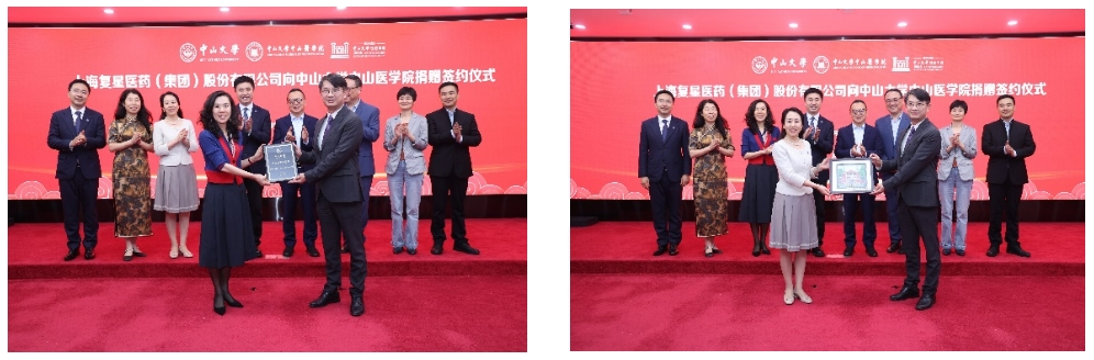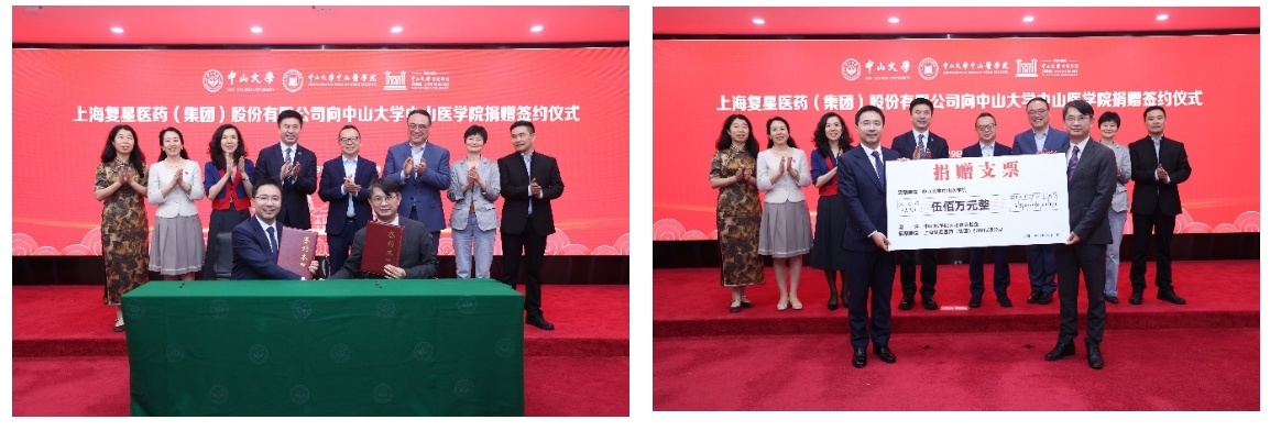 復(fù)星醫(yī)藥醫(yī)學(xué)戰(zhàn)略聯(lián)盟部聯(lián)席總經(jīng)理葉少生先生和中山醫(yī)學(xué)院副院長(zhǎng)鄧凱教授共同簽署了捐贈(zèng)協(xié)議。