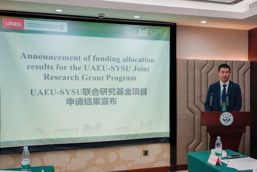 隨后,阿聯(lián)酋大學(xué)信息技術(shù)學(xué)院院長(zhǎng)費(fèi)克里·哈巴斯公布了UAEU-SYSU聯(lián)合基金項(xiàng)目申請(qǐng)結(jié)果。中山大學(xué)環(huán)境科學(xué)與工程學(xué)院王文斌副教授作為獲獎(jiǎng)項(xiàng)目代表發(fā)表致辭。