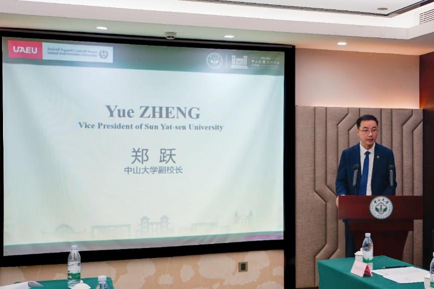 開(kāi)幕典禮由中山大學(xué)工學(xué)部學(xué)術(shù)委員會(huì)副主任、環(huán)境科學(xué)與工程學(xué)院王鵬教授主持。中山大學(xué)副校長(zhǎng)鄭躍教授對(duì)阿聯(lián)酋駐廣州總領(lǐng)事瑪爾妍·尚穆希及其他嘉賓的到來(lái)表示熱烈的歡迎,轉(zhuǎn)達(dá)了中山大學(xué)校長(zhǎng)高松院士對(duì)阿聯(lián)酋總統(tǒng)文化顧問(wèn)、阿聯(lián)酋大學(xué)校長(zhǎng)扎基·努賽貝對(duì)中山大學(xué)百年華誕賀信的感謝。隨后,他介紹了中山大學(xué)的基本情況,并表示在新的百年征程上,中山大學(xué)愿與阿聯(lián)酋大學(xué)攜手共進(jìn)、合作共贏。