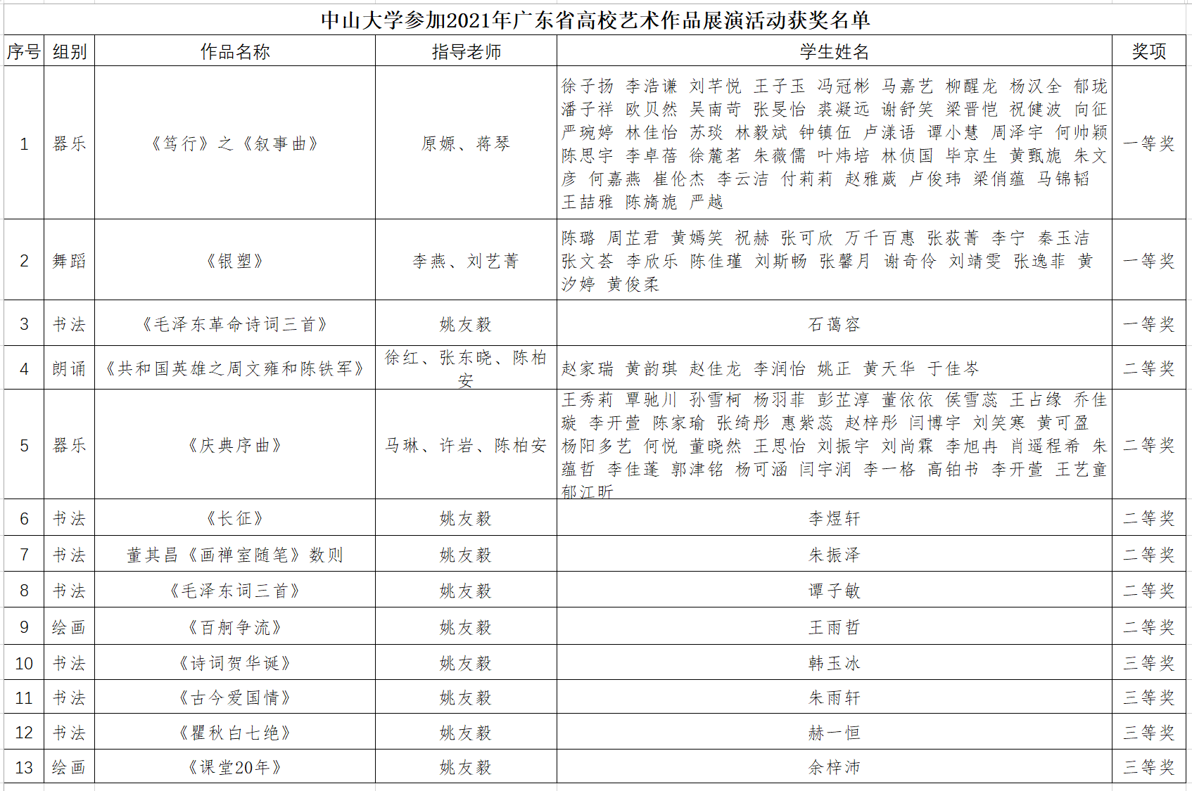 附:中山大學參加2021年廣東省高校藝術作品展演活動獲獎名單