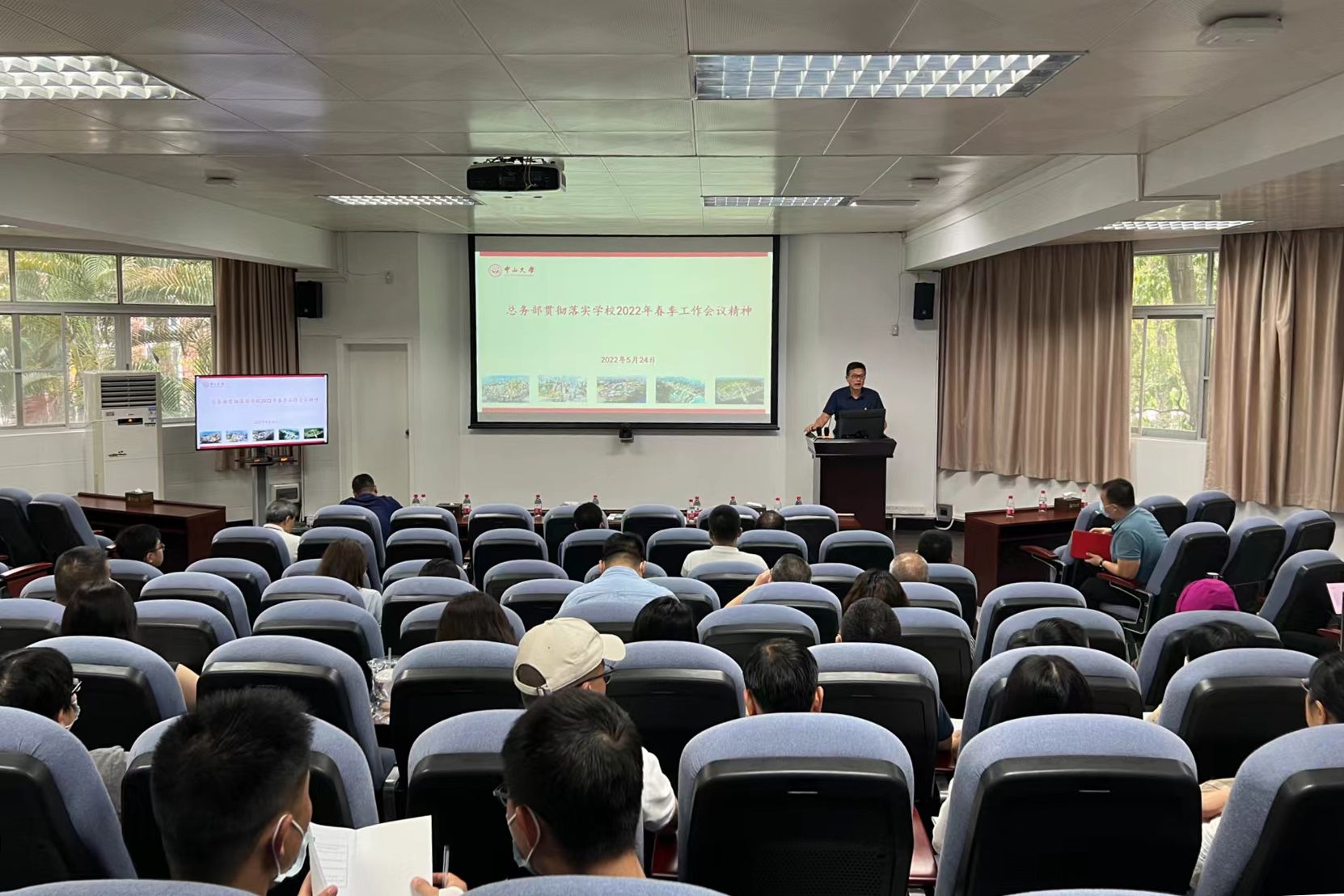 中大新聞網廣州5月27日電(通訊員李石圳)5月24日,總務部在廣州校區南校園第三教學樓213會議室召開全部大會,深入學習貫徹落實學校2022年春季工作會議精神。會議由總務部黨總支書記胡海峰主持,總務部全體人員參會。
