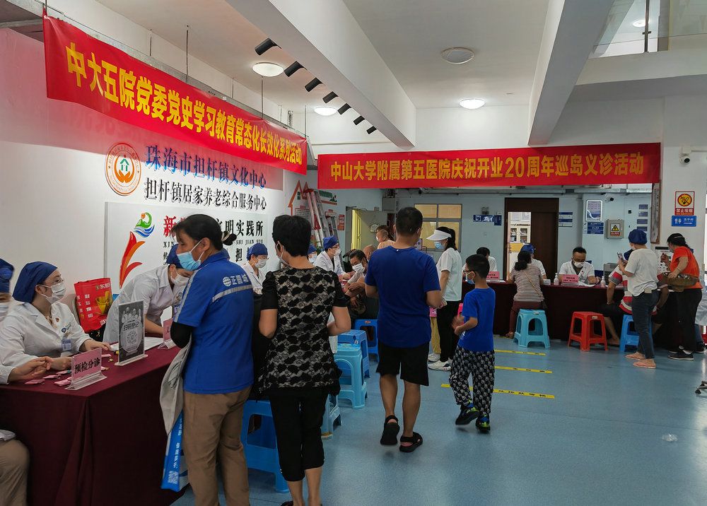 據了解,外伶仃島位于珠海市香洲區東南部,距珠海市區27.5海里,海島醫療衛生條件有限,“看病不方便”“就醫成本高”的問題一直困擾著島上居民。中山大學附屬第五醫院慶祝開業20周年巡島義診活動于今年4月啟動,旨在推動優質醫療資源上島下沉,讓老百姓在家門口享受優質醫療服務,是醫院黨委深入推動黨史學習教育取得實效,踐行“我為群眾辦實事”的重要舉措。除了巡島義診,醫院還針對各類人群的健康需求,組織醫護人員進社區、企業、學校,確保為廣大市民提供更便捷、更優質的醫療服務,讓義診服務覆蓋珠海所有黨旗飄揚的地方。