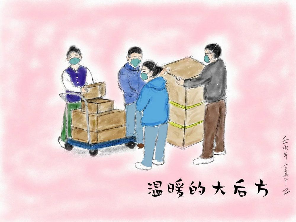 溫暖的大后方(繪圖:附屬第三醫院感染科許鎮)