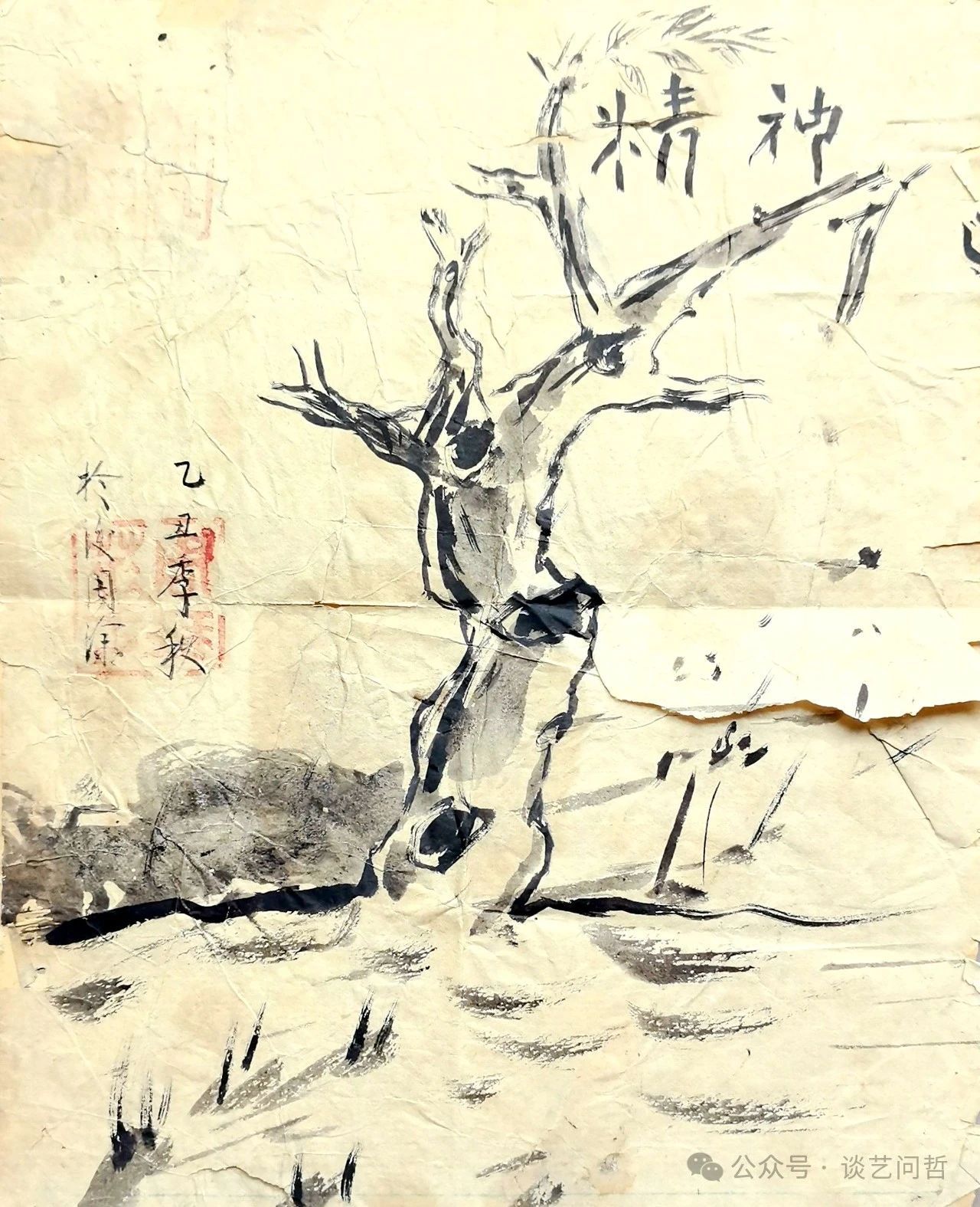 父親的床頭,有兩個大的相框,里面擺放一些老照片,以及自己抄錄的詩詞警句。其中便有魯迅先生《記念劉和珍君》中的:“真的猛士,敢于直面慘淡的人生,敢于正視淋漓的鮮血。”我能體會到父親作為一個思想者所承受的那份孤獨和堅執。相框中還有父親早在1980年于陽信后周老家繪制的一幅水墨小品,在我印象中,這應該是他唯一的山水畫作。畫作主體是一株枯樹,樹葉稀疏而枝干虬勁。父親自題曰“精神”,然“精神”二字皆筆畫殘缺,父親當以此畫寄寓他坎坷的人生際遇以及永不妥協、剛正持守的精神品格。父親的精神世界其實并不灰暗低落,他總是引導自己及家人朝著積極的方向奮進。因此,案頭相框中同時又擺放了他抄錄的唐代詩人王之渙的《登鸛鵲樓》,以及主席的名作《卜算子·詠梅》。