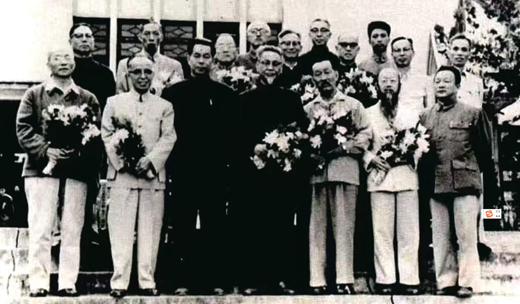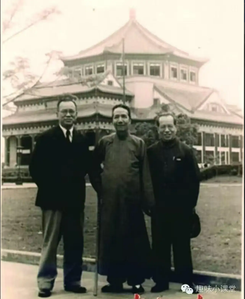 1950年代中期,姜立夫(右)與陳序經(左)和陳寅恪(中)在中山紀念堂合照