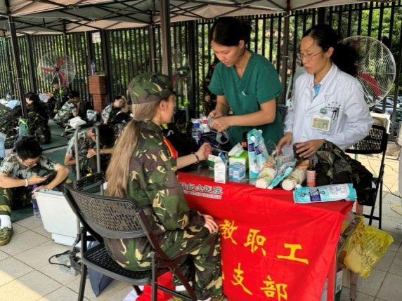 在軍訓期間,中山大學志愿者作為輔助力量,在醫療保障中也發揮著不可或缺的作用。無論是引導學生前往醫療點,還是協助醫護人員進行急救處理,志愿者都提供了及時的幫助與支持。他們的付出與奉獻,是軍訓順利進行的堅實后盾,展現了中大學子樂于助人、勇于擔當的精神風貌。