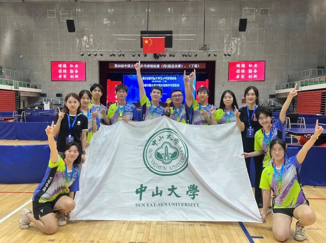 第十三屆中國大學生陽光體育乒乓球聯賽(總決賽)在吉林省吉林市舉行。中山大學乒乓球代表隊派出包括本科、碩士、博士生在內的10名運動員,在教練員孫睿、蘇超怡的精心指導下,奮勇拼搏、力挫勁敵,在混合團體項目中勇摘桂冠!