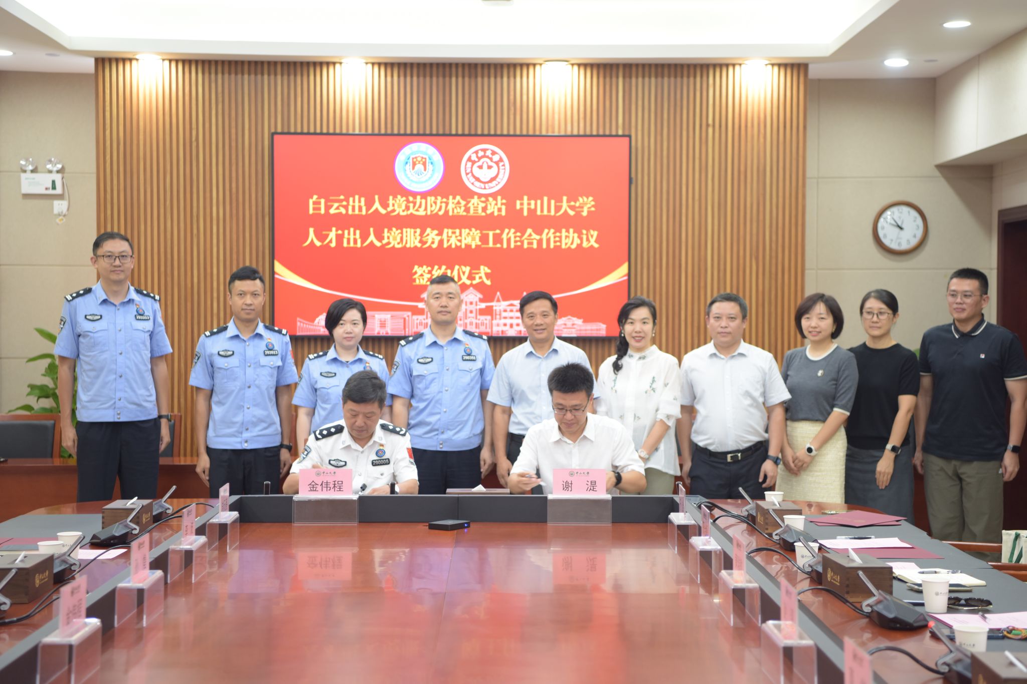 中大新聞網訊(通訊員林琳、涂加樂)9月20日,白云出入境邊防檢查站(以下簡稱“白云邊檢站”)與中山大學人才出入境服務保障合作協議簽約儀式在廣州校區南校園舉行。中山大學副校長謝湜教授、人力資源管理處長莫華等相關部門負責人,廣州邊檢總站黨委委員、副總站長、白云邊檢站黨委書記、站長金偉程,白云邊檢站邊防檢查處副處長(主持工作)孫煌出席。簽約儀式由莫華主持。