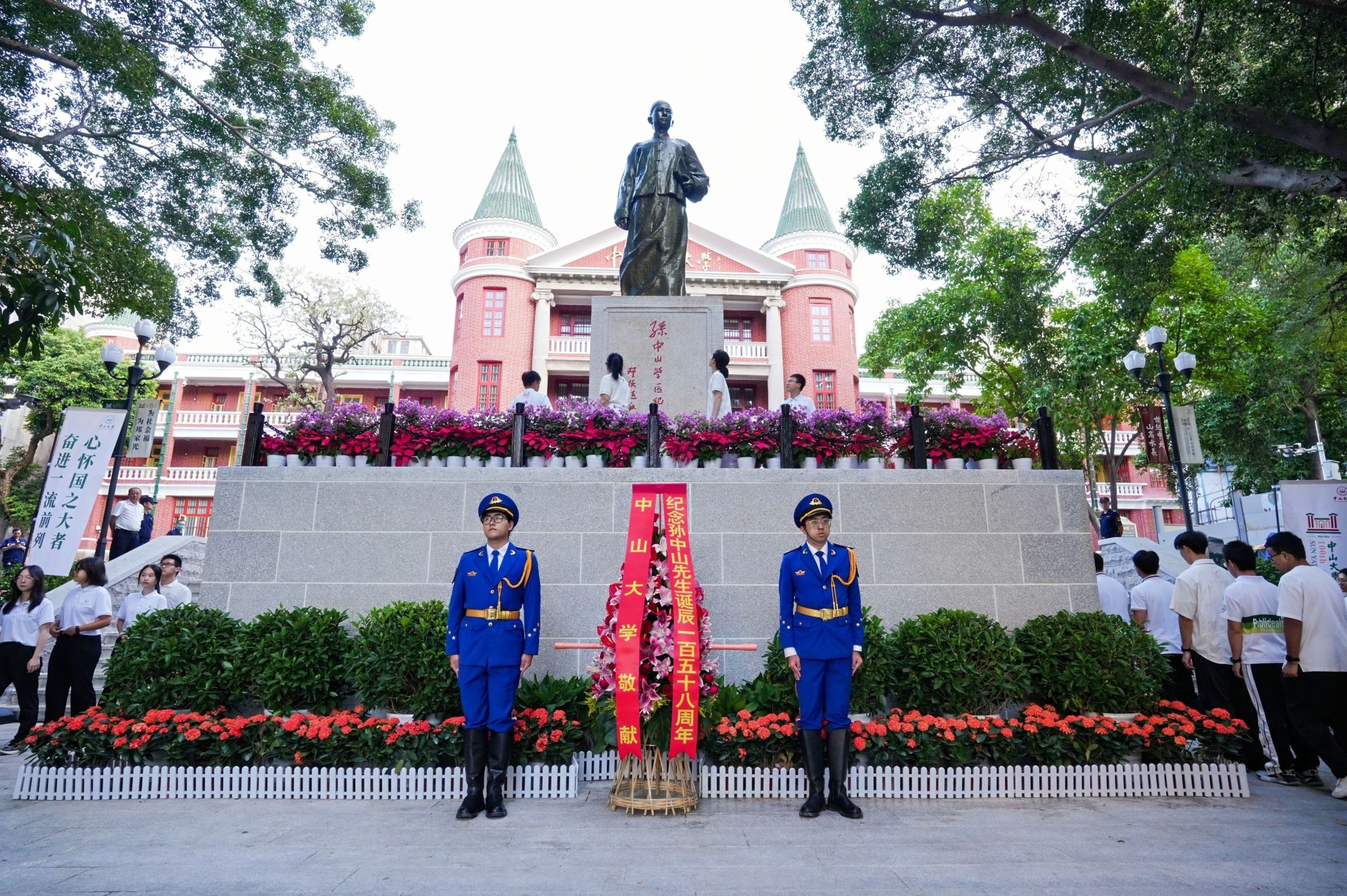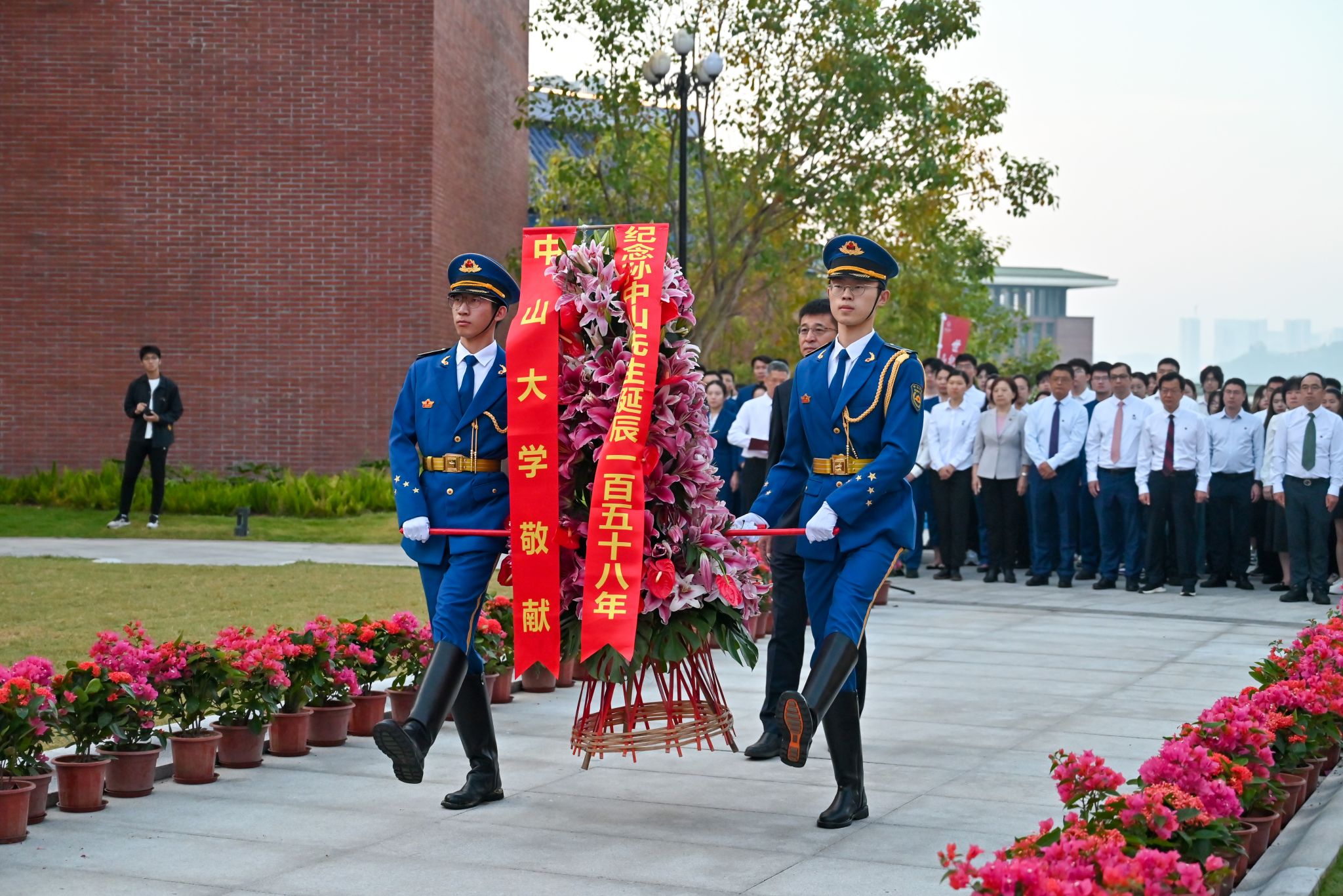 校黨委書記朱孔軍、校長高松,校黨委副書記張琪,副校長劉濟科,副校長鄭躍,副校長邰忠智分別在五個校區(園)主禮獻花儀式,向孫中山先生致敬,為中山大學慶生。學校黨委副書記國亞萍,醫學部綜合管理處處長龍波,東校園管理委員會李明章主任,珠海校區管理委員會劉梅主任,深圳校區管委會溫光浩常務副主任分別主持了廣州校區南校園、北校園、東校園,珠海校區和深圳校區的儀式。學校全體校領導,各職能部門、院系及附屬單位負責人和師生代表參加儀式。