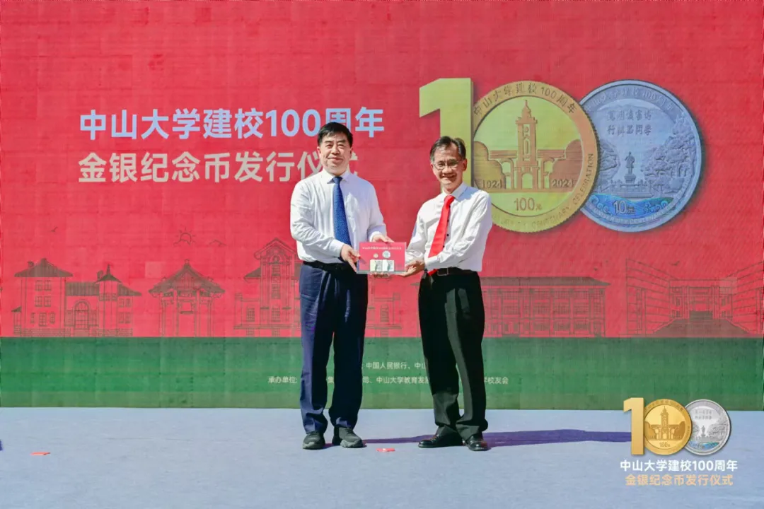 值得一提的是,中國金幣集團有限公司董事長焦瑾璞代表中國金幣集團有限公司向中山大學捐贈編號為“2024”的中山大學建校100周年金銀紀念幣一套,中山大學博物館(校史館)館長徐俊忠代表學校向中國金幣集團有限公司回贈收藏證書。
