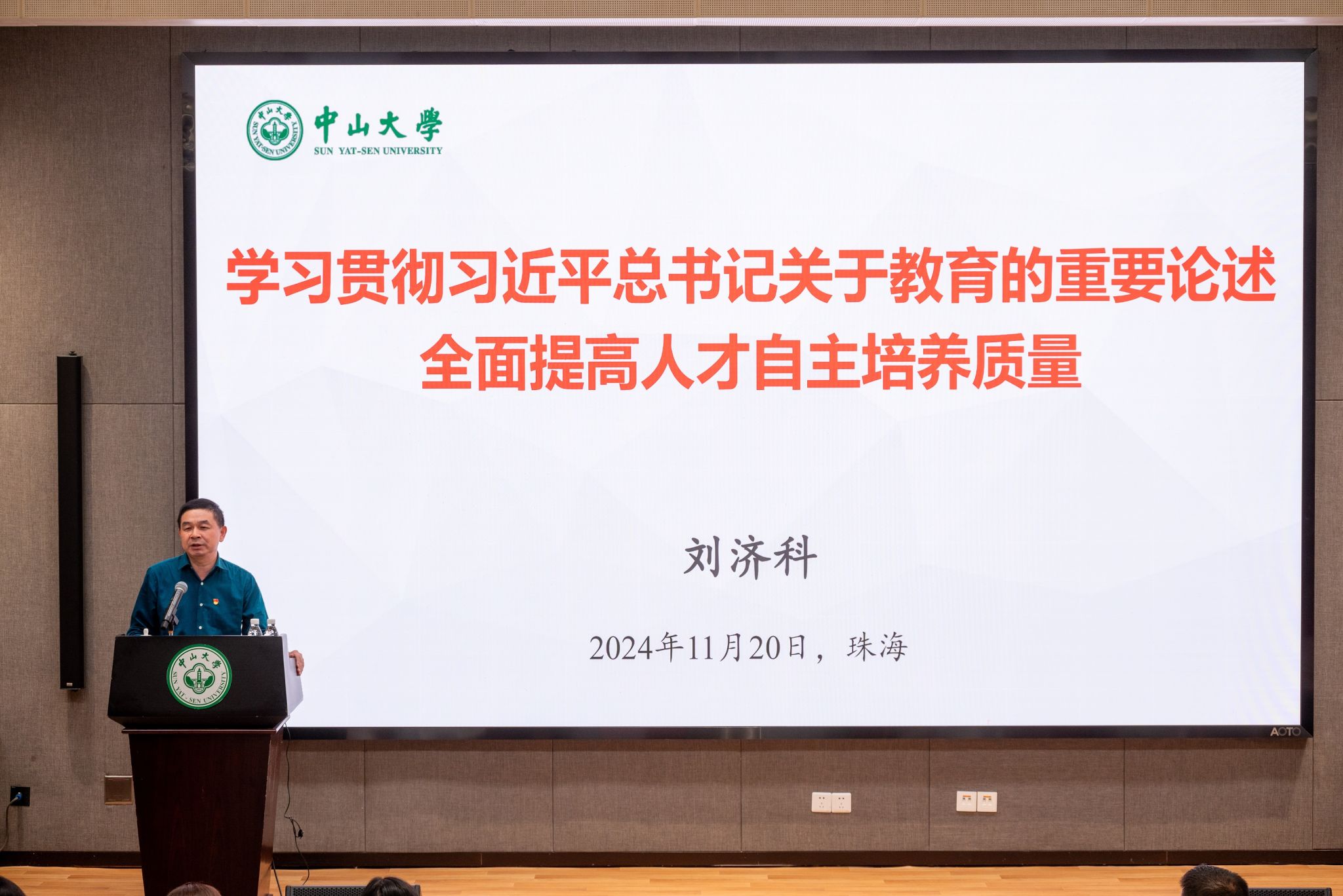 中大新聞網(wǎng)訊(通訊員何甜)11月20日,副校長(zhǎng)劉濟(jì)科教授以“學(xué)習(xí)貫徹習(xí)近平總書記關(guān)于教育的重要論述,全面提高人才自主培養(yǎng)質(zhì)量”為題,結(jié)合學(xué)校發(fā)展和人才培養(yǎng)實(shí)際,在珠海校區(qū)海琴六號(hào)C103為珠海校區(qū)旅游學(xué)院、哲學(xué)系(珠海)、地球科學(xué)與工程學(xué)院、海洋科學(xué)學(xué)院等院系200多名學(xué)生講授形勢(shì)與政策課。課程由旅游學(xué)院黨委書記黃山主持。