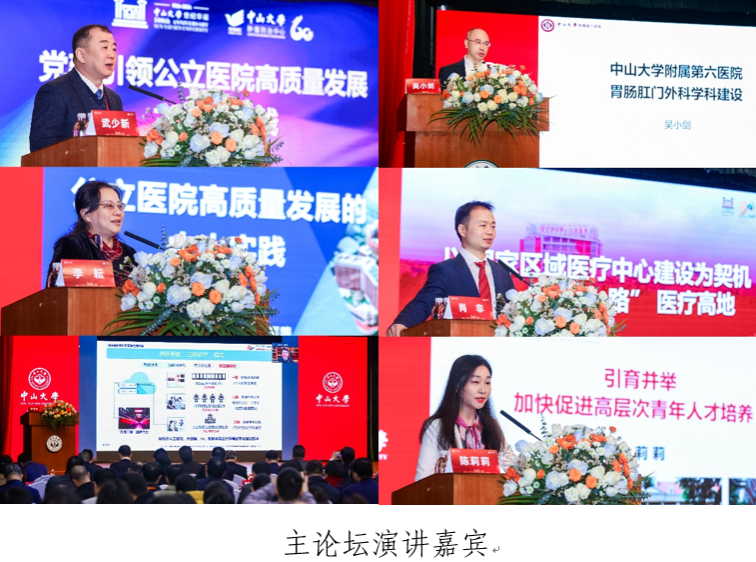 論壇主題報告環節邀請了中山大學腫瘤防治中心黨委書記武少新、復旦大學附屬中山醫院黨委副書記李耘、中山大學中山眼科中心院長林浩添、中山大學附屬第六醫院院長吳小劍、中山大學附屬醫院喀什醫院院長肖非、中山大學附屬口腔醫院院長陳莉莉分別圍繞“黨建引領公立醫院高質量發展”、“學科融合與醫工交叉”、“學科建設”、“國家區域醫療中心建設與醫療幫扶”、“高層次青年人才培養”的主題分享了各家醫院的特色做法與服務健康中國建設的突出成效,展現了中大醫科在服務人民生命健康方面的貢獻,交流了醫療界同行在醫院高質量發展中的經驗做法。