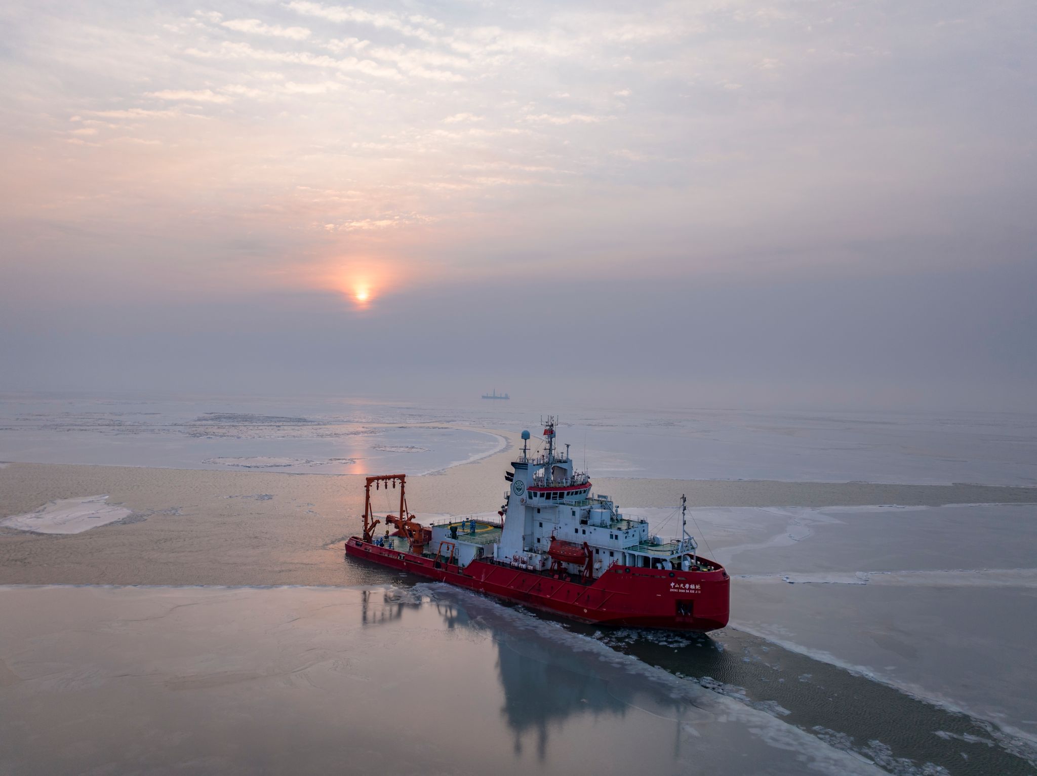 該航次是國內首次冬季渤海海冰-海洋-生態綜合調查, 覆蓋冬季渤海海冰形成期、盛冰期、消退期,參航的45位科考隊員來自中山大學、中國海洋大學、天津大學、大連理工大學、天津科技大學、華東師范大學、河海大學、西北工業大學、福建農林大學、中國船舶科學研究中心、自然資源部第一海洋研究所、中國科學院海洋研究所等12所大學和科研機構,協同開展海冰物理輻射特性、海洋環境、大氣環境、海洋生態、海洋化學等多參數觀測,獲取研究渤海冬季冰-海-氣系統關鍵過程及其生態效應的寶貴數據,助力我國海洋強國和海洋經濟高質量發展。