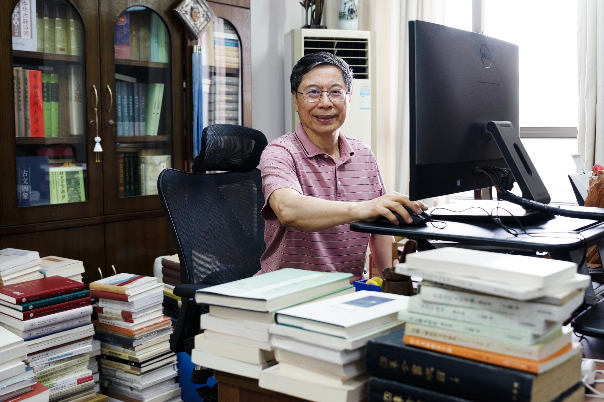 推開中文堂七樓那扇木門,眼前的時光仿佛被凝固:三面書墻如群山環抱,隔出兩張桌案;一張筆墨紙硯靜待揮毫,一張電腦與常用書冊相伴。古籍與新著交錯,師友贈書與家傳舊冊并立。這間約三十平方米的“澹齋”,是中山大學中文系吳承學教授日常讀書和寫作的地方,凝縮了他四十年學術生涯的剪影。