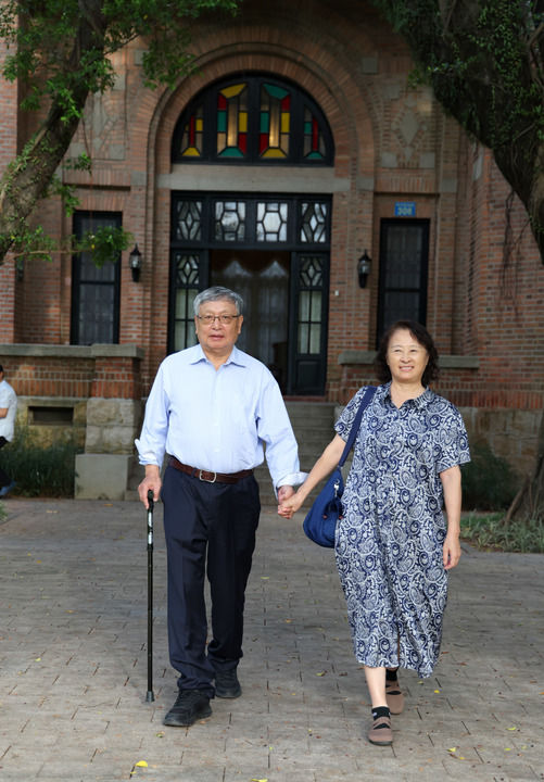 9月7日,張益唐和太太在中山大學(xué)校園里。新華每日電訊記者盧漢欣攝