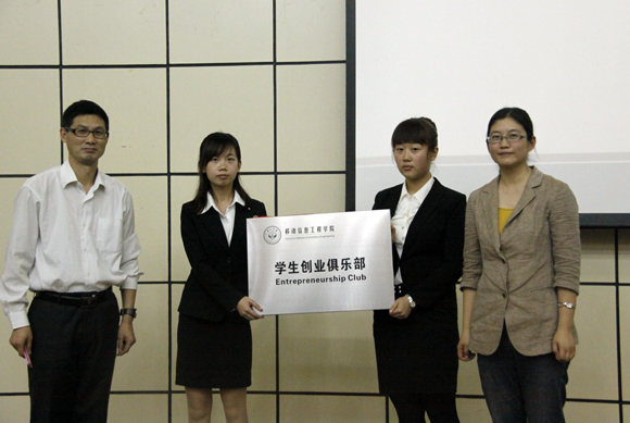 漆小萍處長與楊然副院長共同為“移動信息工程學院學生創業俱樂部”揭牌