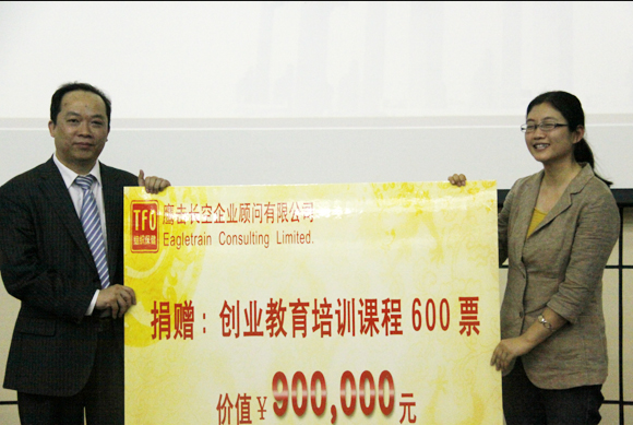 翁山總經理為學院捐贈“鷹擊長空創業教育培訓課程”(鷹擊長空獎學金)支票板