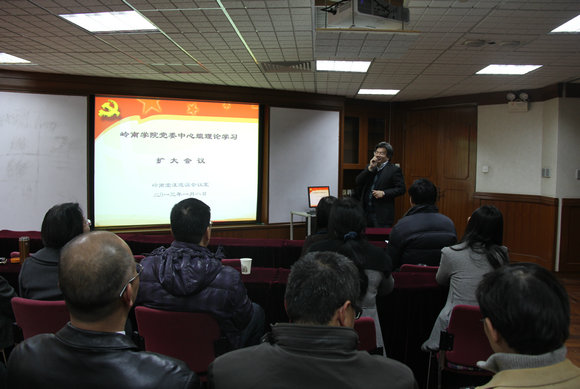 1月8日下午,嶺南學院黨委理論中心組舉行學習擴大會議,認真學習貫徹黨的十八大精神。會上,中山大學黨的十八大精神宣講團成員、政治與公共事務管理學院岳經綸教授應邀做“十八大與中國的社會建設”專題宣講報告。嶺南學院、國際商學院、港澳珠江三角洲研究中心黨政負責人,院黨委委員、系正副主任、黨支部書記、各項目負責人等參加了學習。學習會由嶺南學院黨委張文彪書記主持。