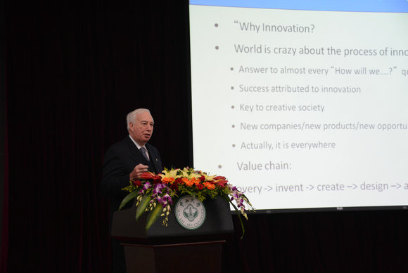 在報告會上牟德博士提到,創新是任何一個文化邁向成功的重要途徑,也是解決發展中問題的重要手段。在全球化的進程中,文化起著雙刃劍的作用,既可以激發創新精神,又可能成為交流的壁壘。同時他還闡述了創新文化所具有的領導力、最小的決策層次結構、關注結果、注重各種才能或創造力的價值、非傳統的價值觀念、行動迅速且容易適應、愿意接受失敗等七個特征。最后,師生們圍繞主題與牟德博士進行了探討交流。