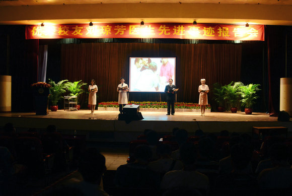 報告團由劉瓊芳生前所在的石家莊第一醫院遲秀梅副書記、張振平副院長帶隊。我校黨委副書記、校友總會常務副會長李萍教授出席報告會并致辭。