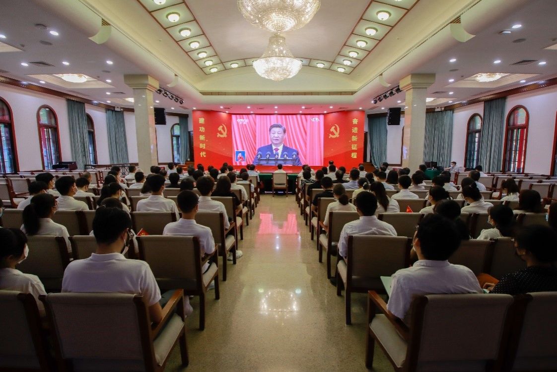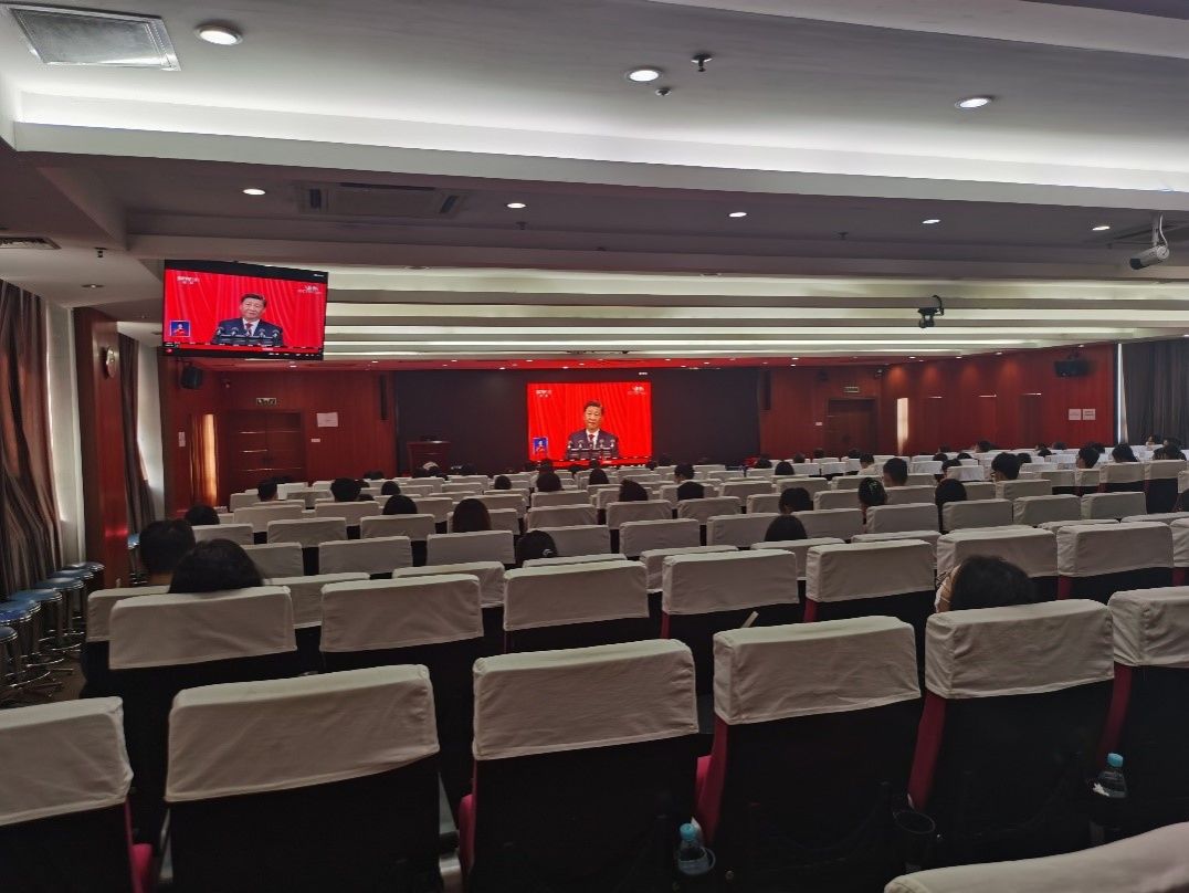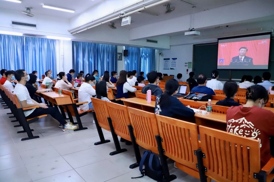 16日上午,廣州校區南校園小禮堂,在校校領導和校長助理,機關部處負責人,師生代表共同聆聽了習近平總書記的大會報告。會場內,大家通過屏幕深切感受到了人民大會堂內莊重熱烈的現場氛圍。