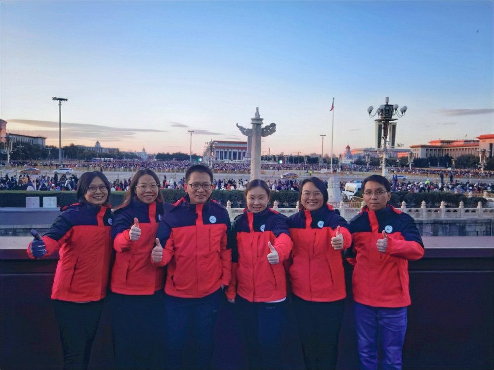 學員們在北京天安門觀禮臺參加升旗儀式