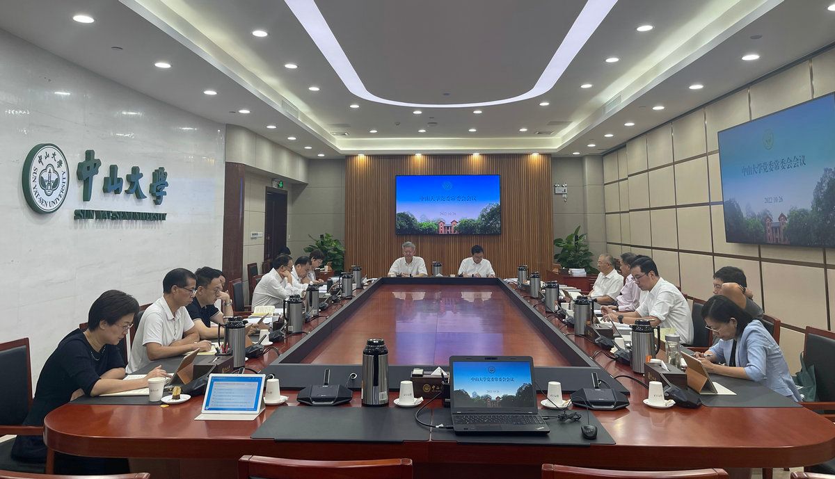 中大新聞網廣州10月26日電(記者蔣靜)10月26日下午,我校在廣州校區南校園中山樓召開黨委常委會,專題傳達學習黨的二十大精神,全面研究部署學校學習宣傳貫徹工作。會議由校黨委書記陳春聲主持。校黨委副書記、校長高松,校黨委常委及其他校領導、相關職能部門負責人參加會議。
