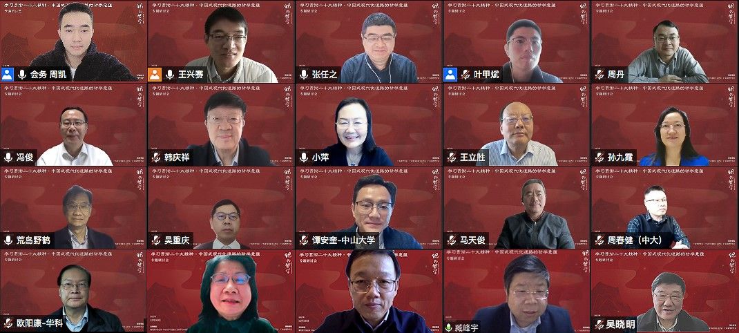 廣東省社科聯黨組書記、主席張知干同志作了熱情洋溢的視頻致辭。他指出,在黨的二十大精神愈發深入人心、正在落地生根的關鍵階段,來自國內相關領域的資深專家相聚云端,聚焦“中國式現代化道路的哲學意蘊”這個重大課題,貫通道理、學理、哲理,深化對黨的二十大精神的學習貫徹,具有重要學術價值和現實引領意義。