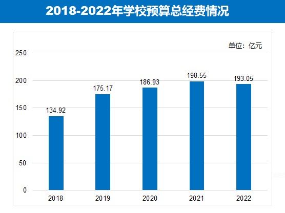 2018年以來,學校預算總經費年均增長率9.37%,由2018年134.92億元到2022年193.05億元,穩居教育部直屬高校前5名。