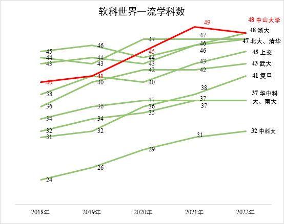 一是多個學科進入國內一流行列。軟科學科上榜數從2017年的31個增加至2022年的48個,連續兩年位居國內高校第一;泰晤士2022年上榜學科數58個,位列國內高校第一。二是學校的國際競爭力和影響力大幅提高。各類國際評價均穩步提升,部分國際主流排行榜已進入全球前100,居于國內高校“第一方陣”。三是學科廣度和水平不斷提升。學校共有52個學科參與全國第五輪學科評估,數量創歷史新高,其中等次保持和上升的學科占參評學科的94%,文理醫工實現齊頭并進、全面升級晉檔。四是高峰學科不斷涌現。生態學、臨床醫學、工商管理3個學科因首輪“雙一流”建設整體建設成效獲評“顯著”(第一檔),被列入新一輪“雙一流”建設“一流學科培優行動”候選名單。