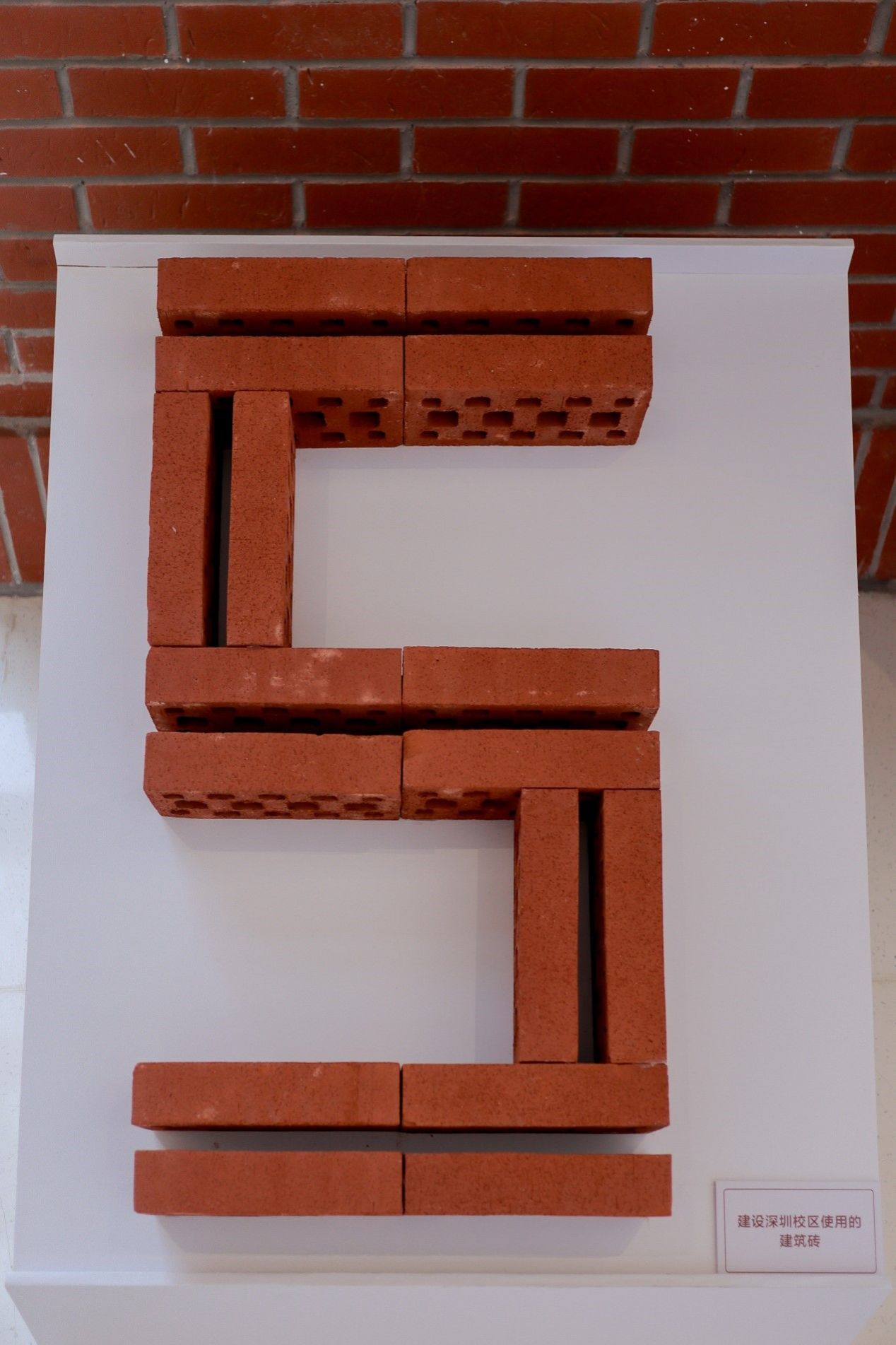 啟建于2015年的深圳校區(qū)已完成一期工程,在2021年培養(yǎng)出第一批本科畢業(yè)生。此次展覽用深圳校區(qū)的建筑用磚拼放了數字5的造型,記錄著深圳校區(qū)建設走過的5年。
