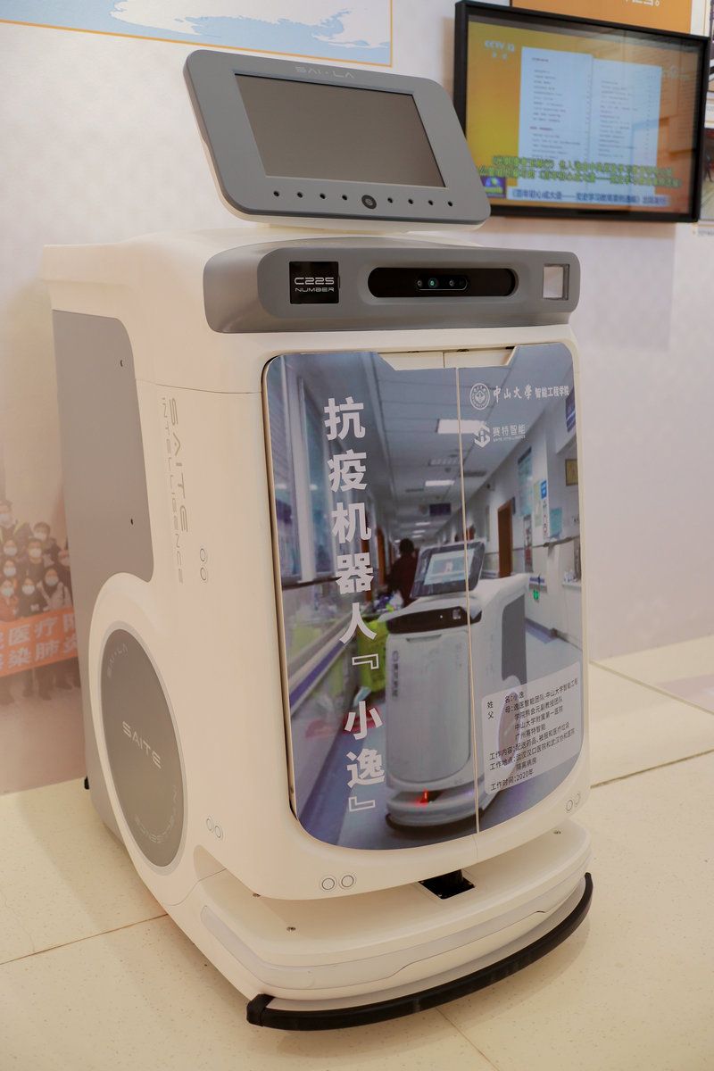 自新冠疫情暴發(fā)以來,中山大學智能工程學院、中山大學附屬第一醫(yī)院聯(lián)合廣州賽特智能科技有限公司研制智能機器人,投放武漢市漢口醫(yī)院、雷神山醫(yī)院等新型冠狀病毒定點收治醫(yī)院,降低醫(yī)護人員工作強度,減少病毒感染風險,協(xié)助醫(yī)院完成具有高感染風險性的醫(yī)護產品護送。